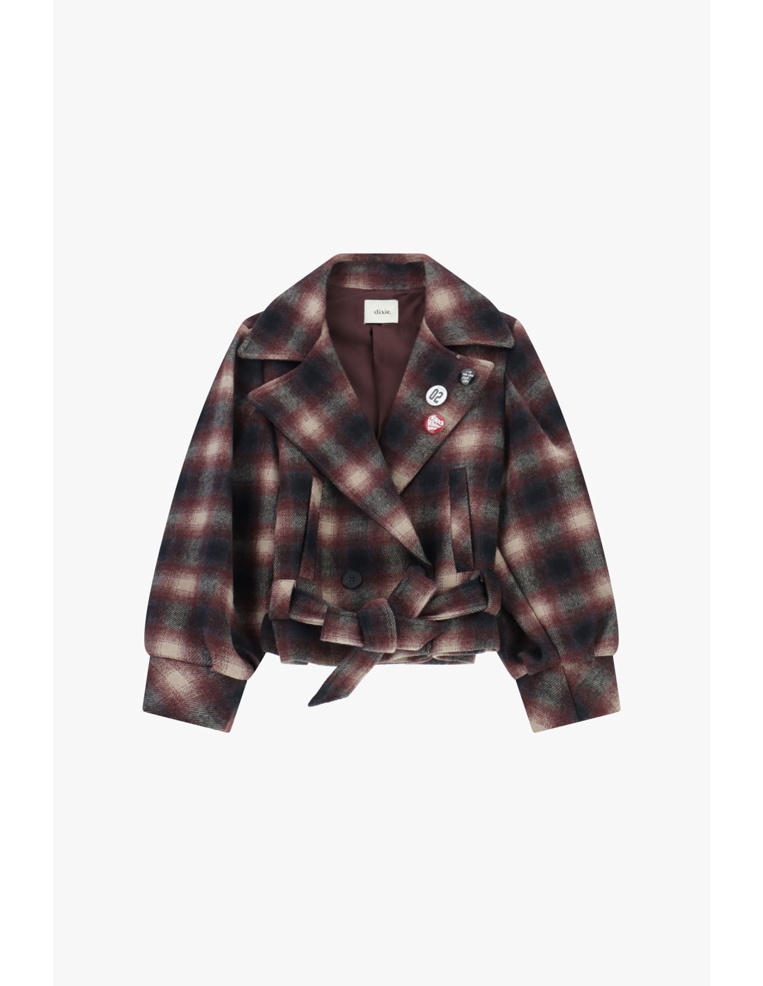 Casaco Curto Com Estampa Xadrez E Cinto Dixie