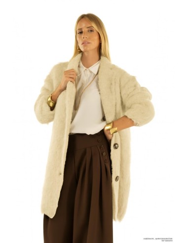 Kontatto assina um casaco macio e envolvente, com uma linha direita ligeiramente oversize para sobrepor com facilidade. Tecido bouclé com efeito peluche, quente e leve. Lapela discreta e botões à vista valorizam a silhueta. Perfeito do escritório ao fim de semana, para looks refinados sem renunciar ao conforto.