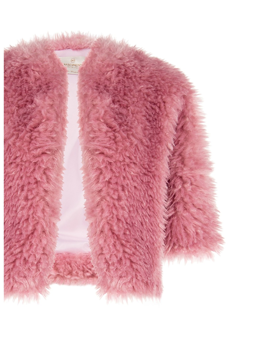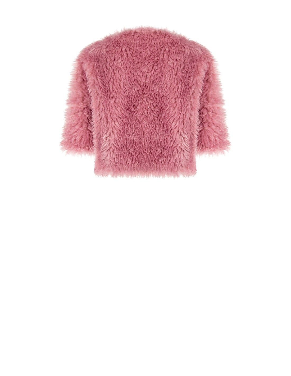 Rinascimento assina uma peça curta de corte suave, que valoriza a silhueta sem criar volume. Ecopelúcia muito macia com interior forrado para conforto térmico. Decote em V sem fechos e mangas 3/4, perfeitas para mostrar os pulsos. Ideal sobre vestidos de festa ou para elevar um look de noite.