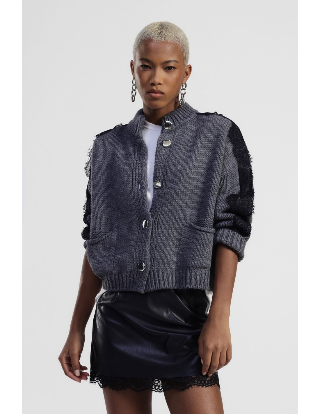 Cardigan Cropped com Bolsos Aplicados e Botões Dixie