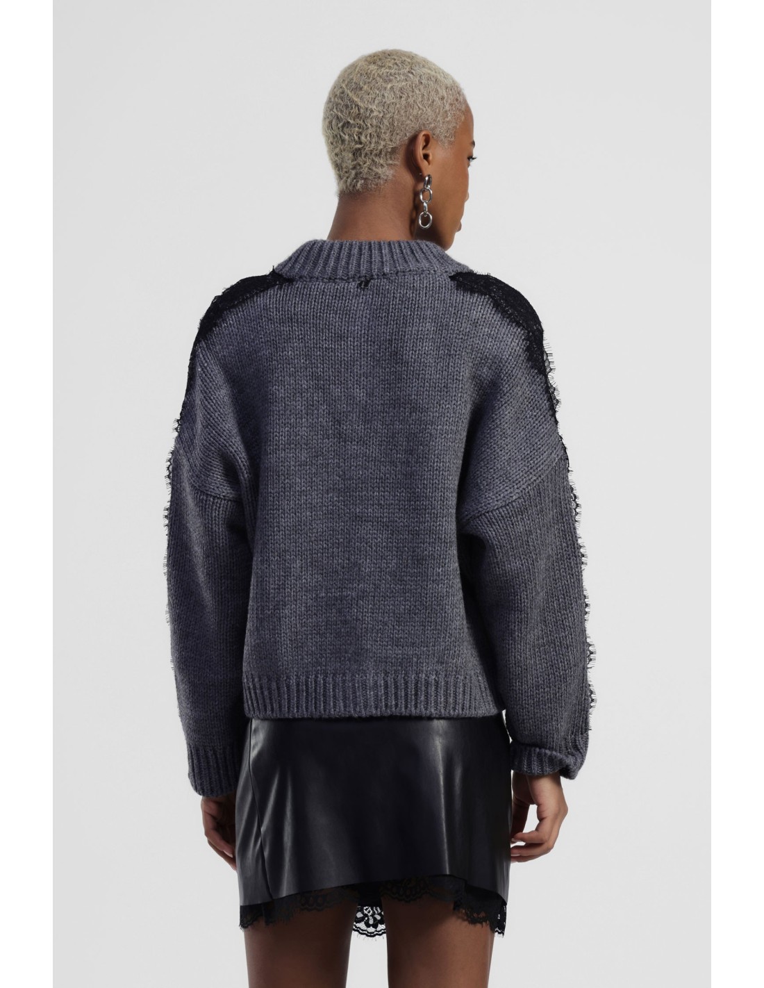 Casaco de malha curto com um corte suave, enriquecido por dois bolsos de remendo à frente e pormenores de trabalho nas mangas. O fecho central apresenta botões grandes a condizer. Perfeito para dar um toque original aos looks do dia a dia, veste-se com leveza e é fácil de combinar com calças e saias.