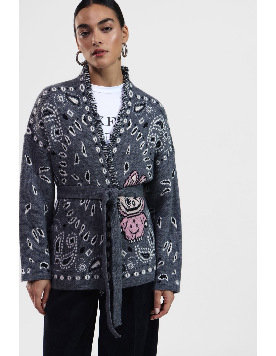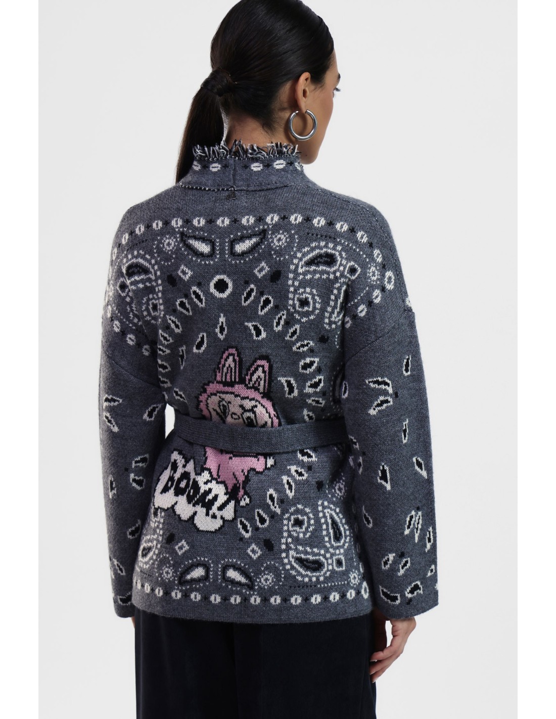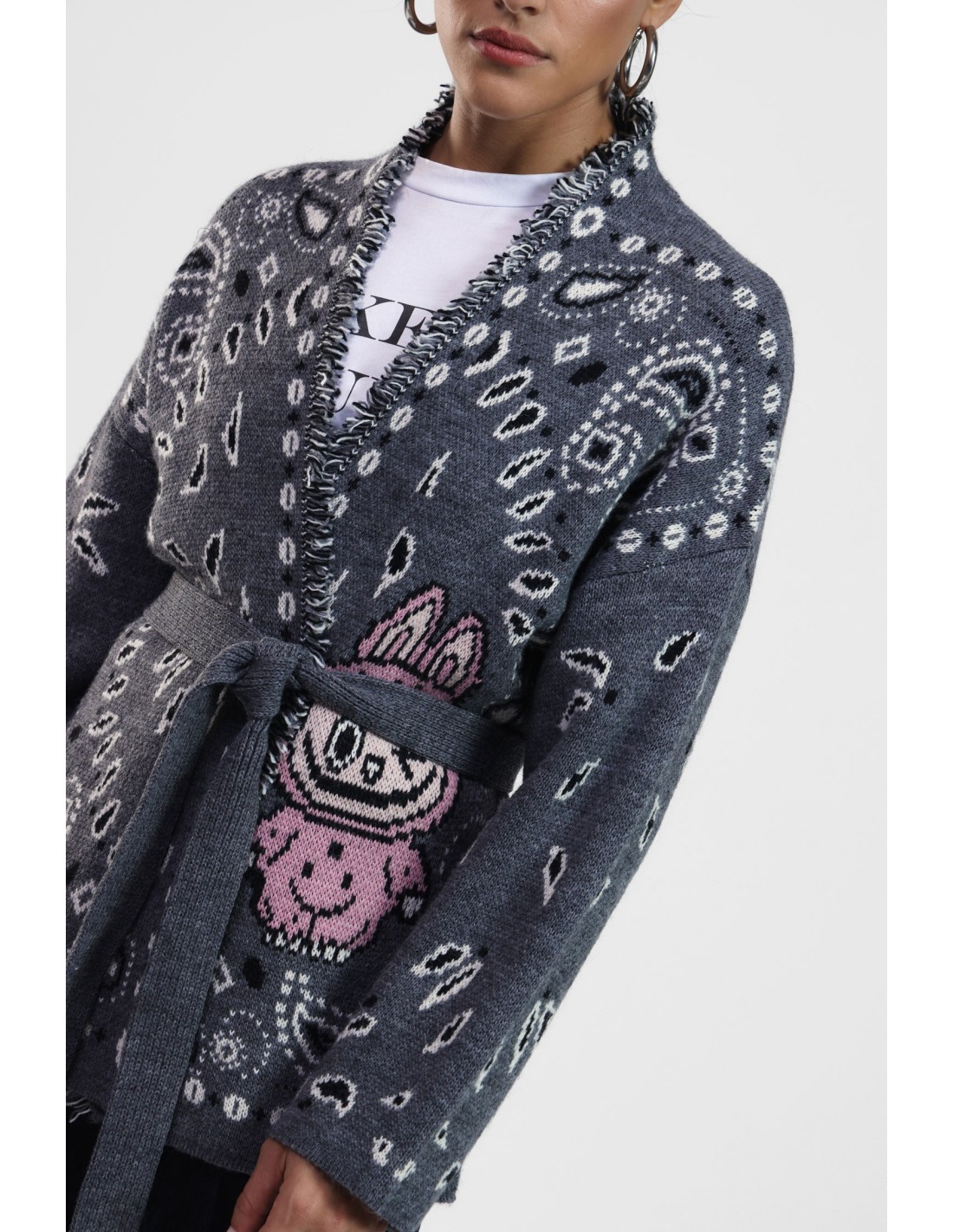 Descubra o cardigã que alia originalidade e praticidade. O cinto confere um toque estruturado, enquanto os pormenores divertidos provocam um sorriso. Perfeito para um look casual que não passará despercebido, esta peça de vestuário destaca-se pelo seu padrão apelativo e pelo seu design vanguardista. Use-a para obter conforto sem sacrificar o estilo.