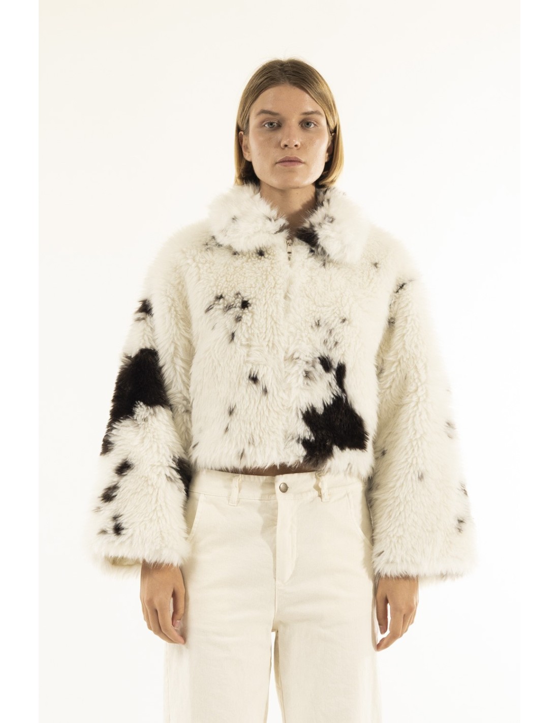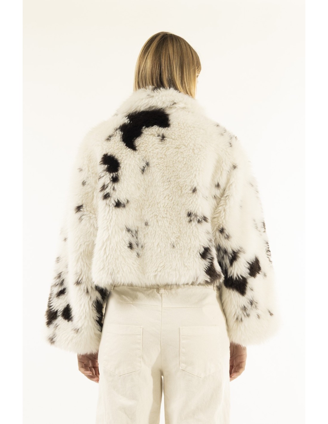 Casaco curto de pêlo estampado de vaca Kontatto