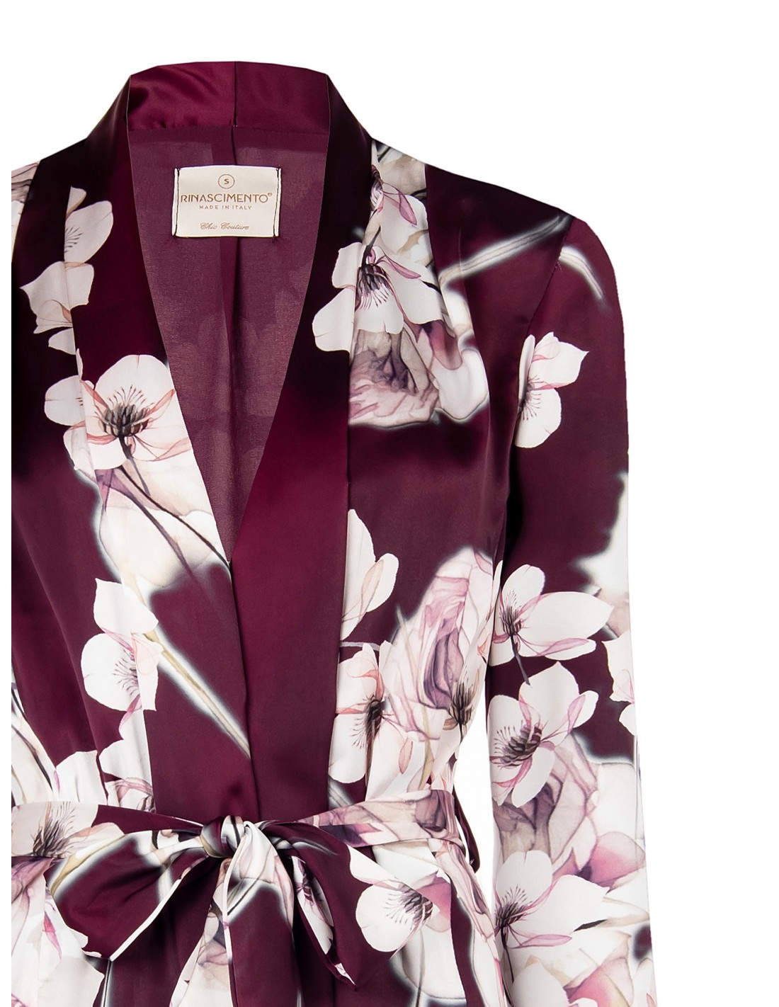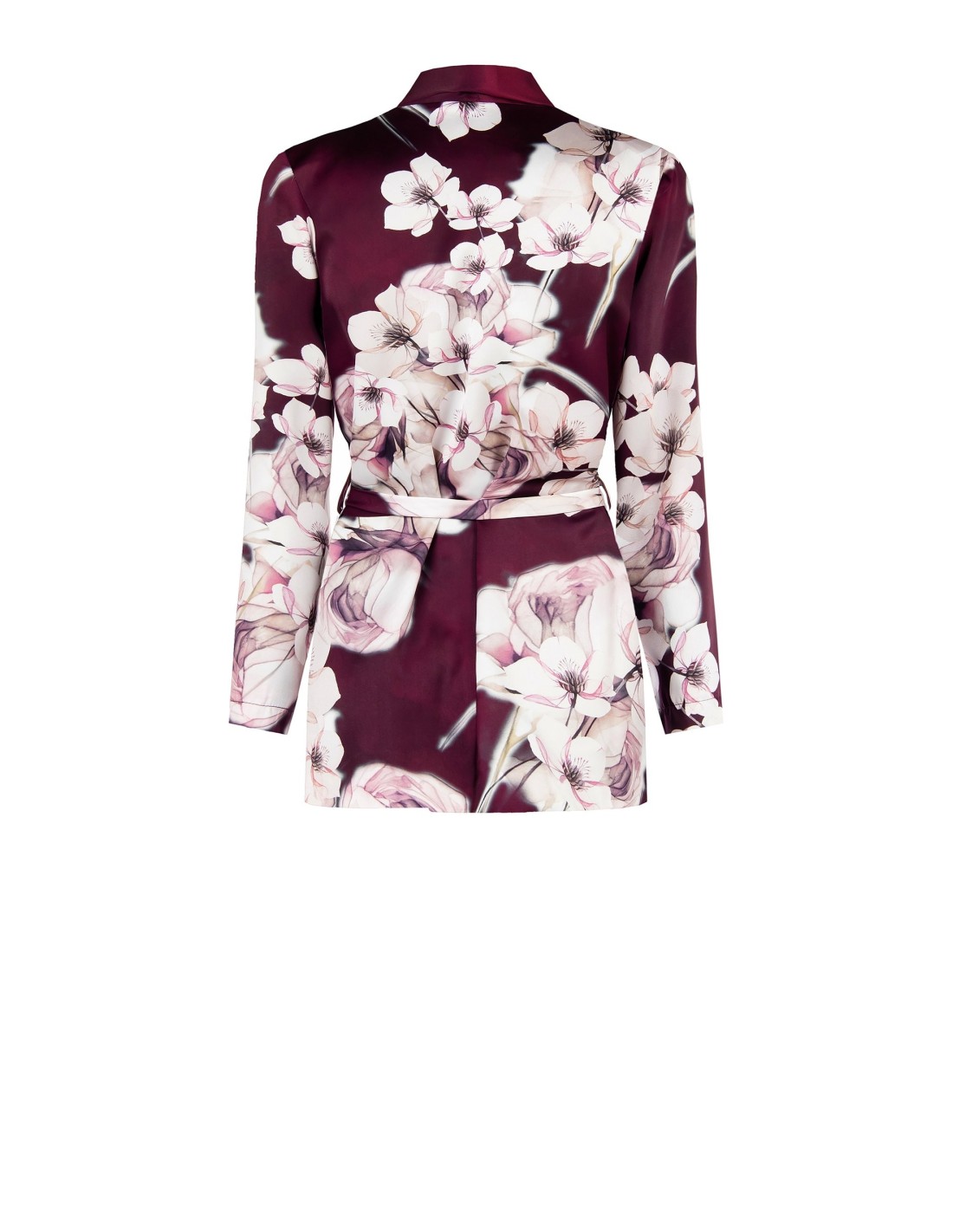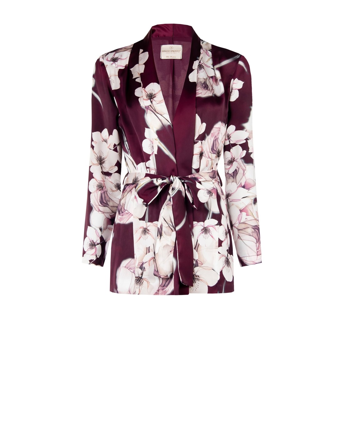 Casaco de quimono de cetim com cinto e dragonas a condizer
