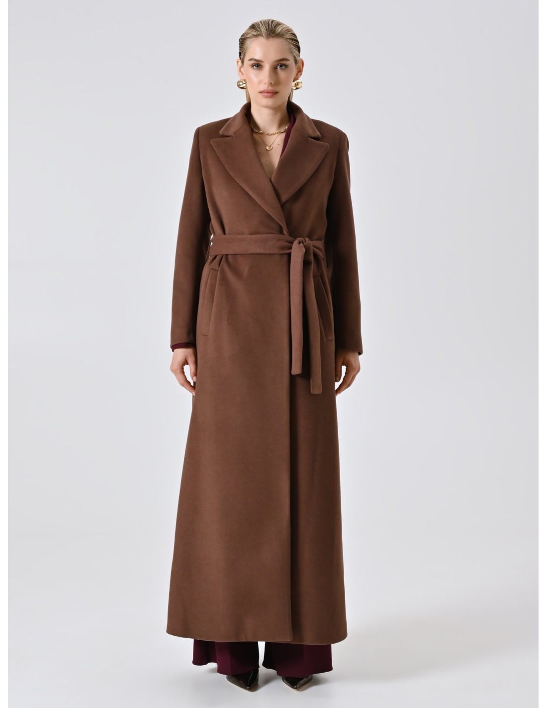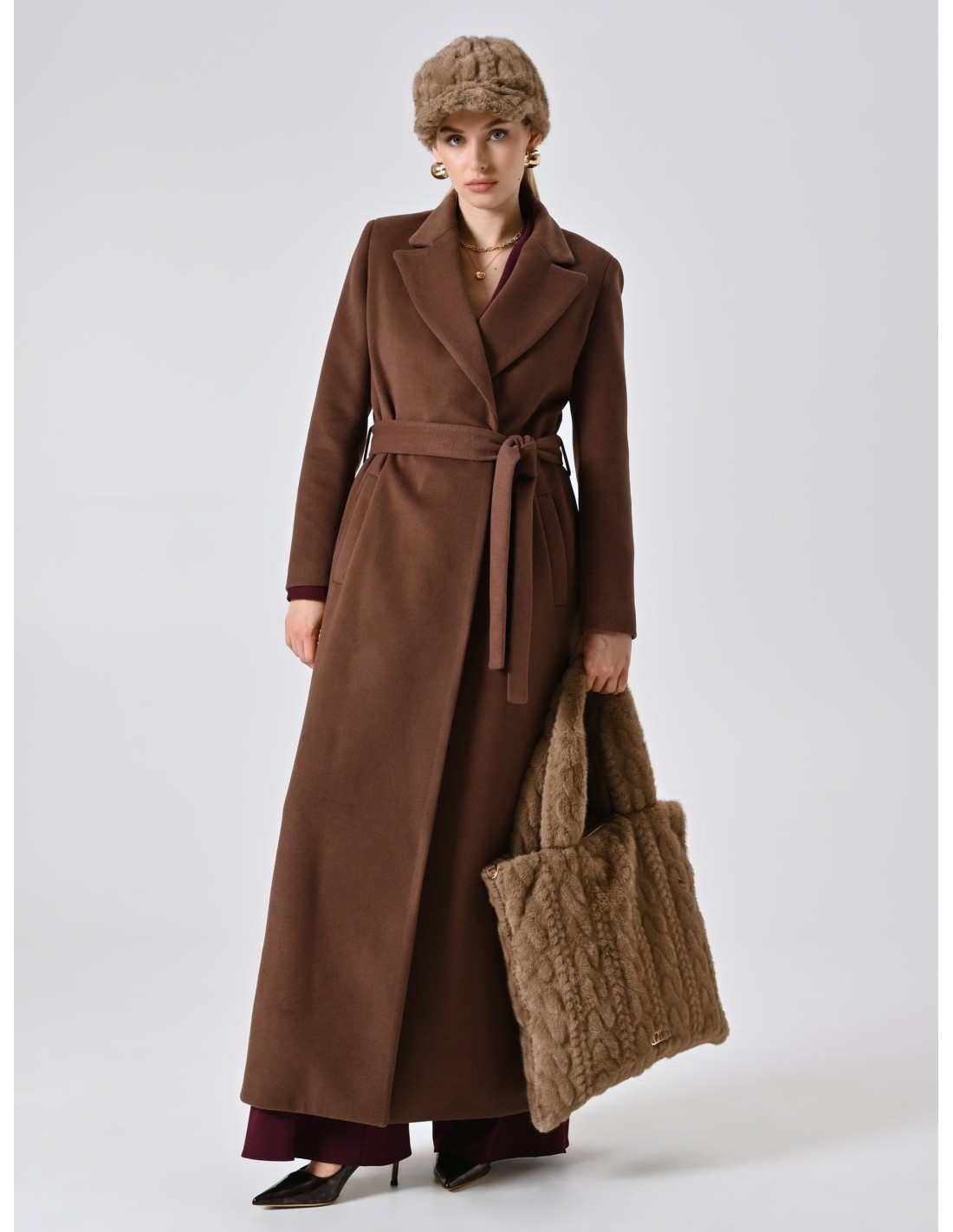 Sobretudo extra longo em velour com cinto coordenado Rinascimento
