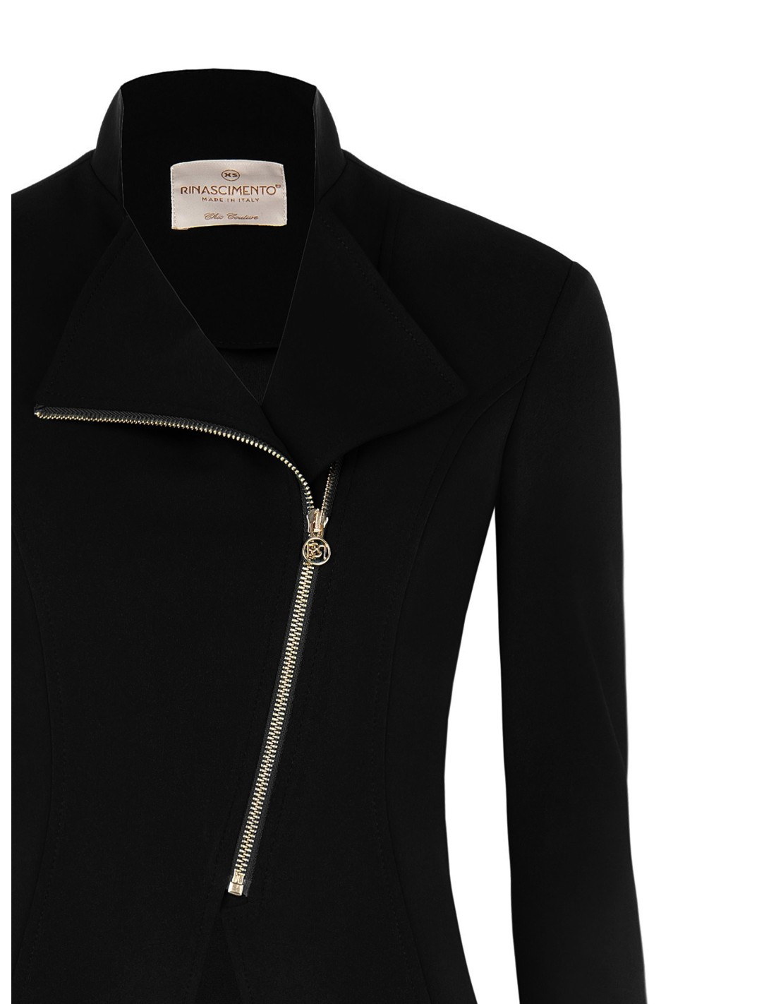 Casaco em crepe de mergulho com fecho de correr e logótipo Rinascimento