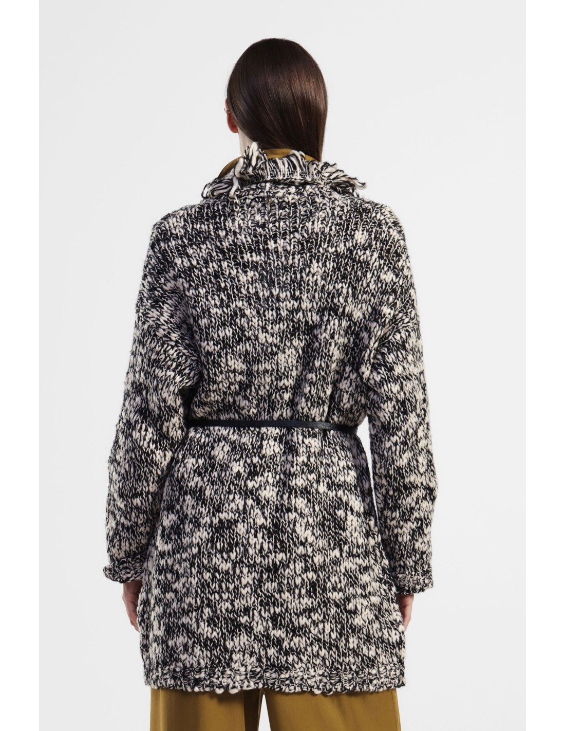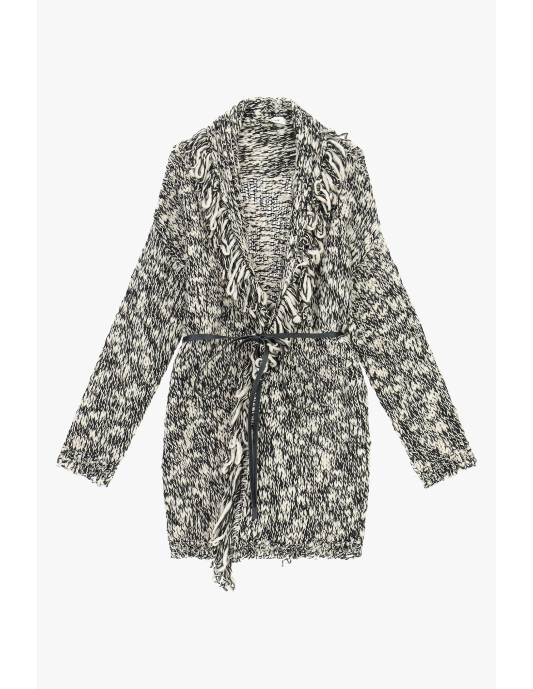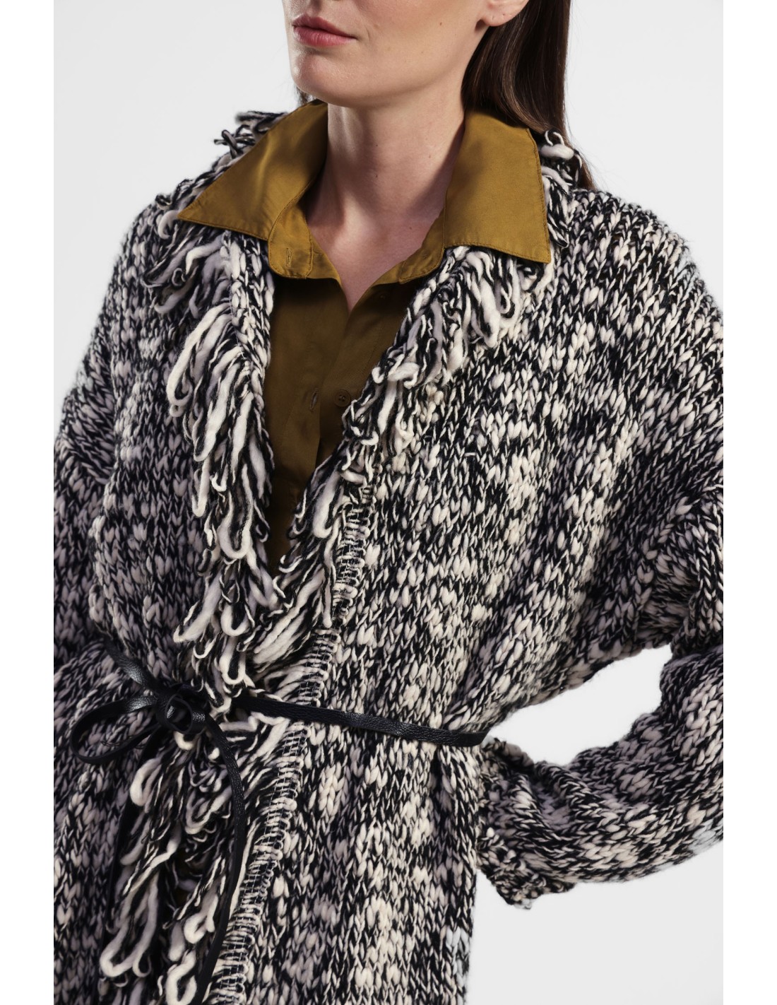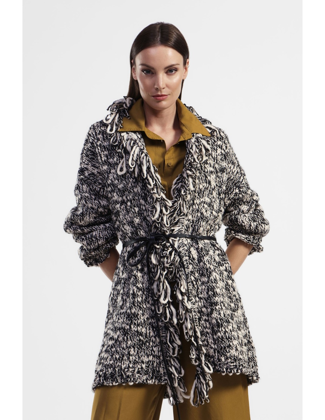 Deixe-se envolver por este cardigã em tecido que combina conforto e estilo numa peça versátil. O cinto dá um toque de graça e permite-lhe personalizar o ajuste de acordo com a sua disposição. É o seu aliado ideal para os dias frios, combinando perfeitamente com jeans ou vestidos leves.