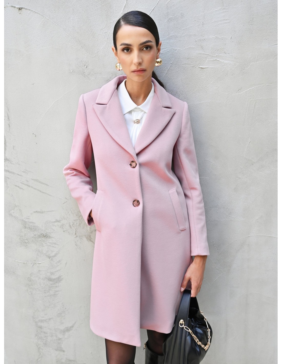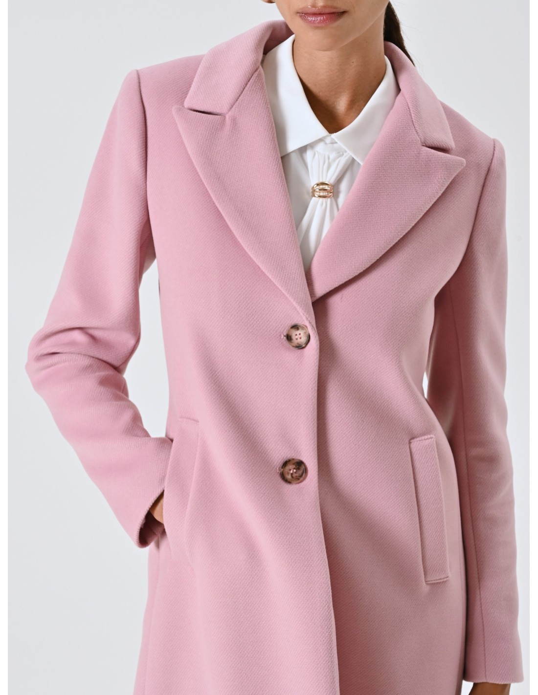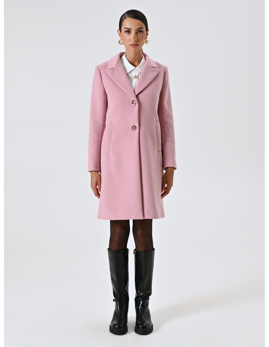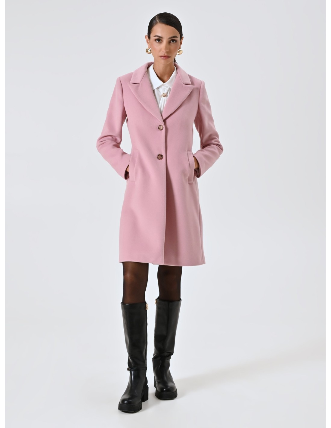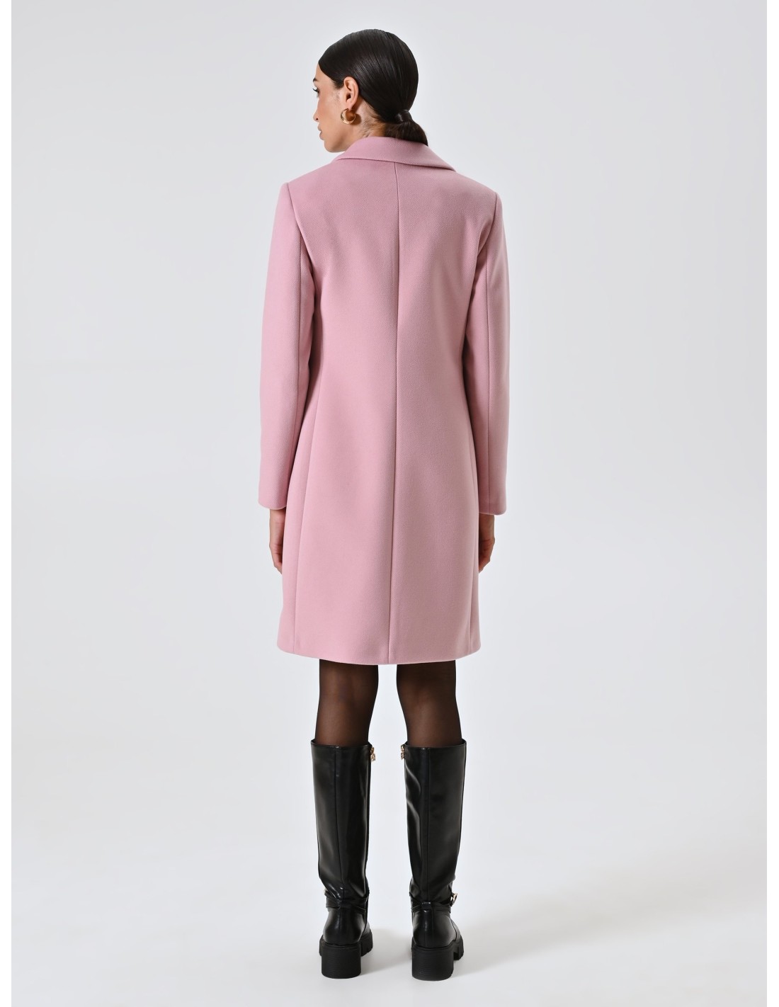 Casaco médio assinado Rinascimento, com um corte justo que valoriza a silhueta sem sacrificar o conforto. Aveludado macio com interior forrado, lapelas pontiagudas e dois botões com efeito de joia; bolsos de debrum para um perfil limpo. Perfeito para o escritório e para compromissos à noite, complementa facilmente o seu guarda-roupa do dia a dia.