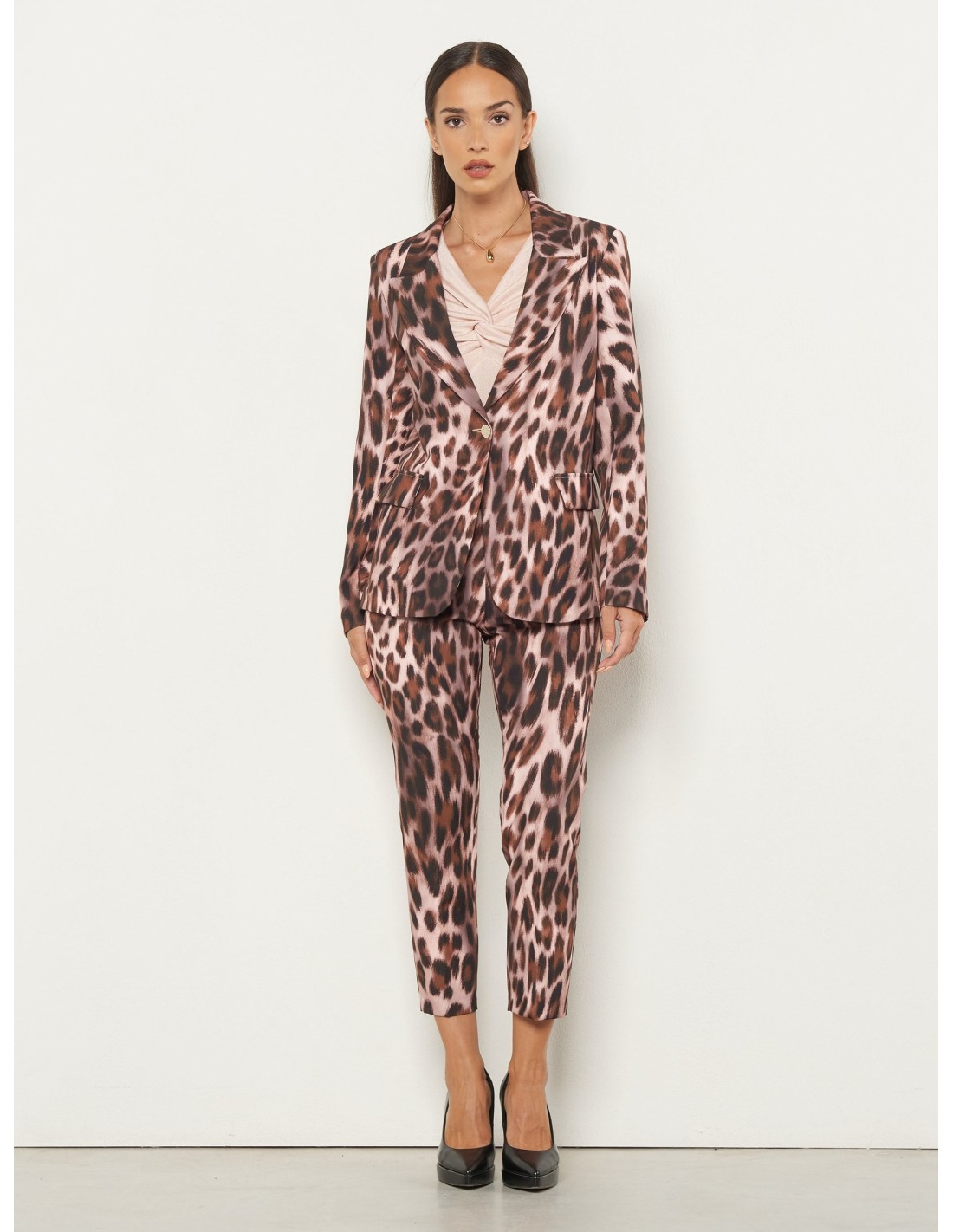 Blazer de corte feminino e ligeiramente ajustado, em tecido fluido com textura acetinada que desliza sobre o corpo com conforto. O revers em bico e o fecho de um botão definem a silhueta com personalidade. Perfeito para o escritório, um jantar romântico ou uma festa.