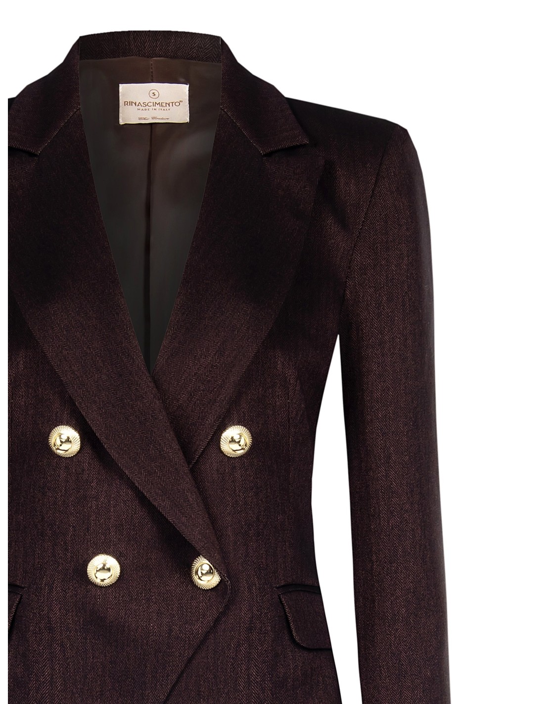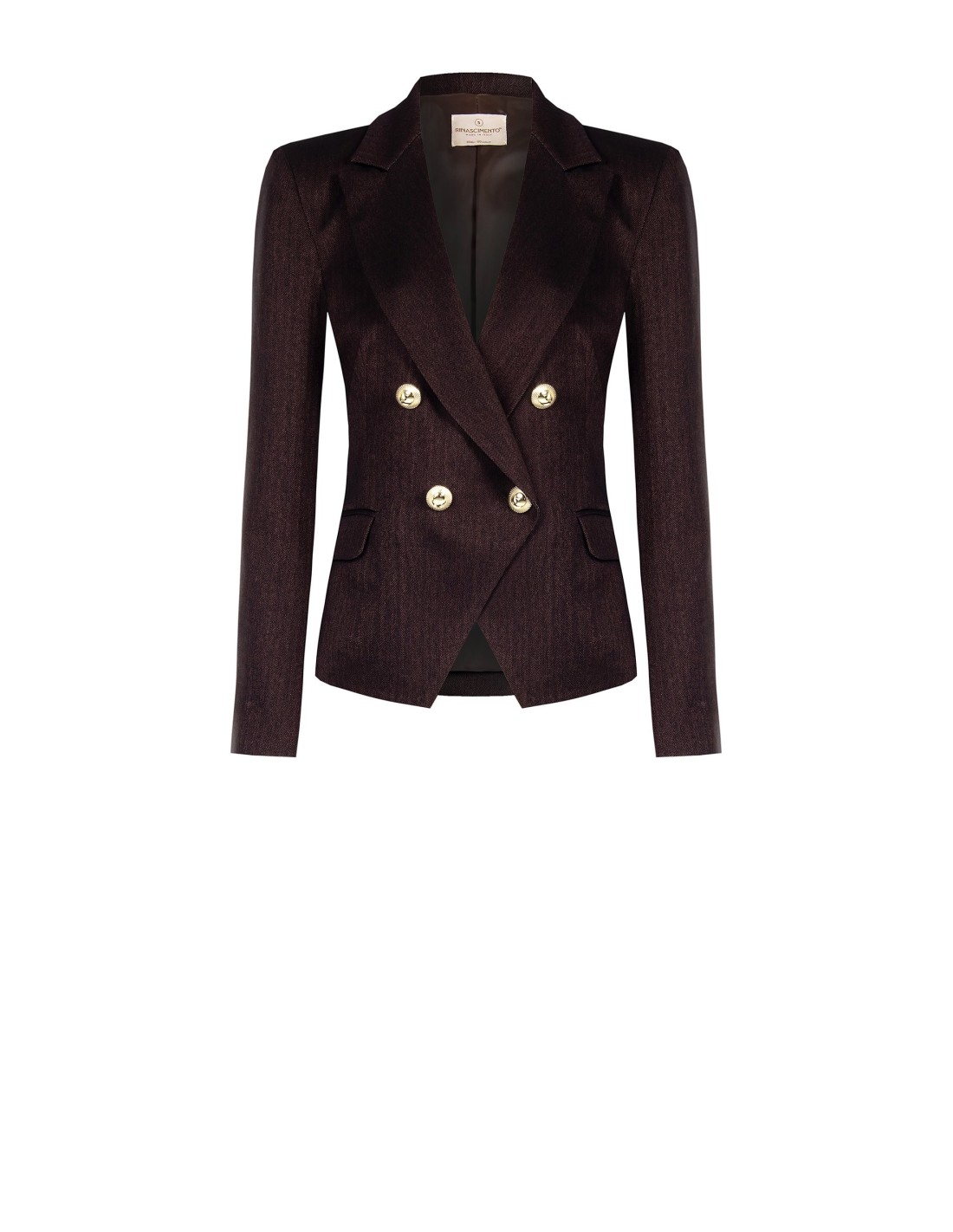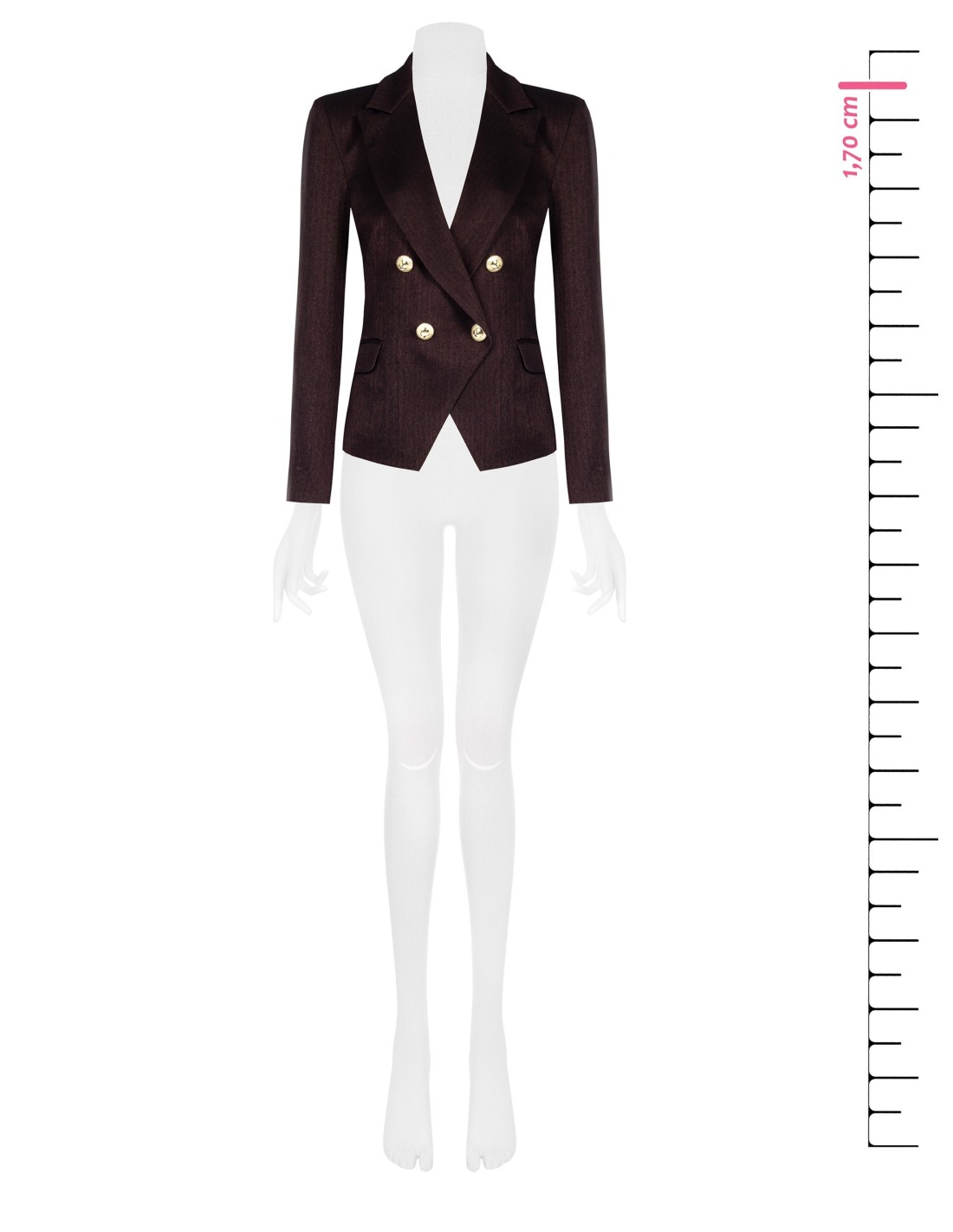 Blazer com corte cintado que valoriza a silhueta com conforto e estrutura. O tecido com efeito espinha confere uma textura refinada, enquanto a lapela em bico e o fecho cruzado com botões joia acrescentam carácter. Perfeito para o escritório, um aperitivo ou looks do dia a dia mais cuidados.