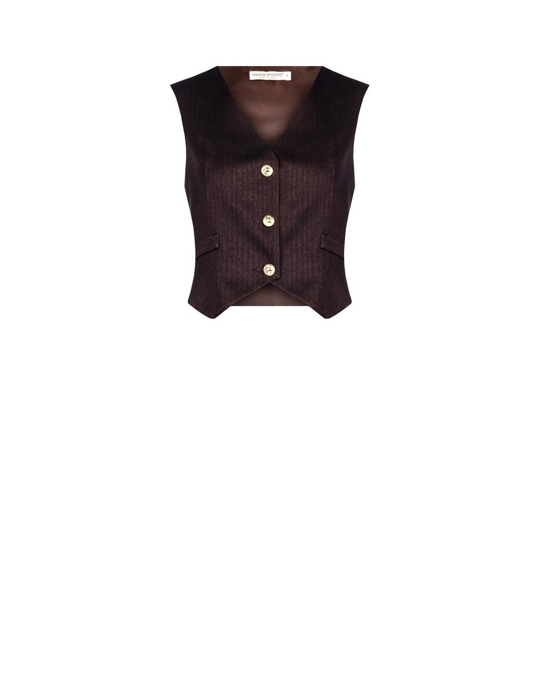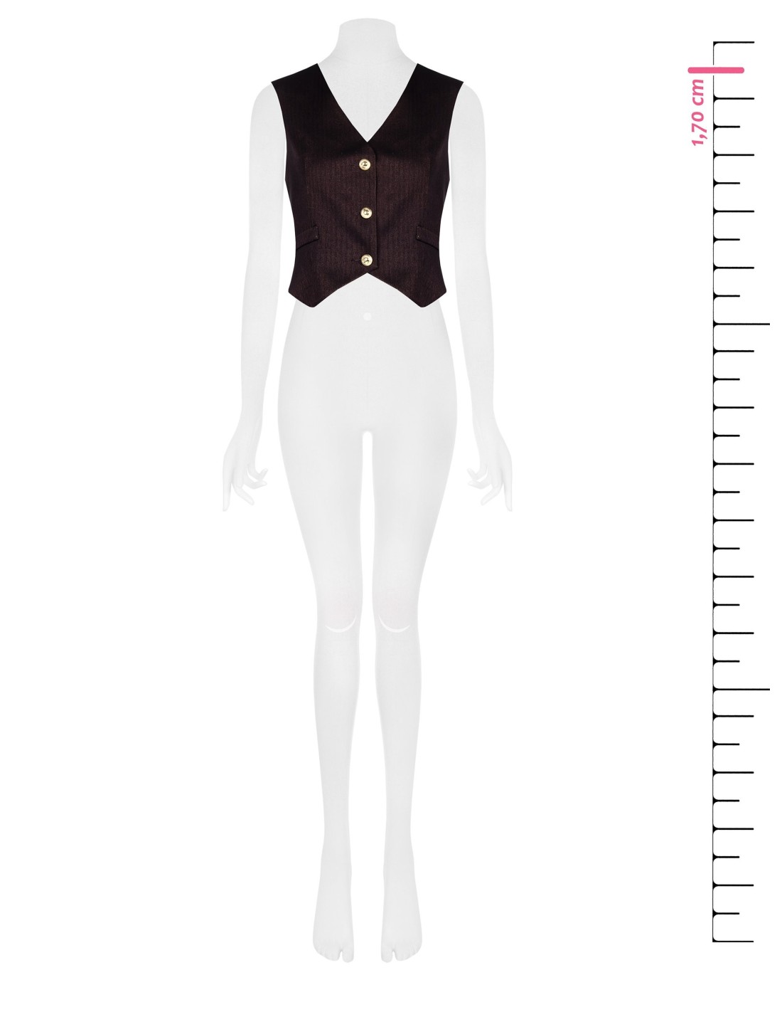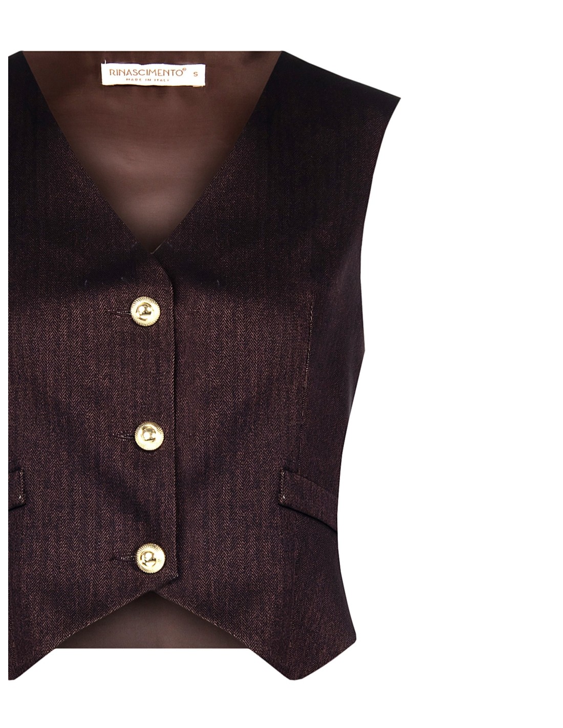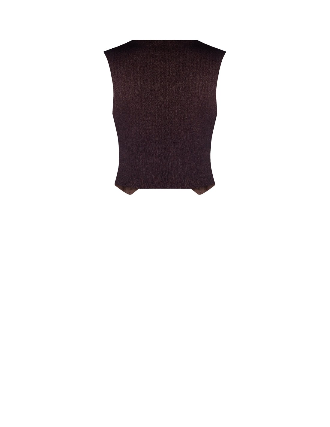 Gilet de corte justo e feminino, em tecido estruturado com refinado padrão espinha-de-peixe que acompanha a silhueta com conforto. O decote em V e os botões joia valorizam o design, enquanto a bainha pontiaguda afina a figura: perfeito para escritório, aperitivos e chique do dia a dia.