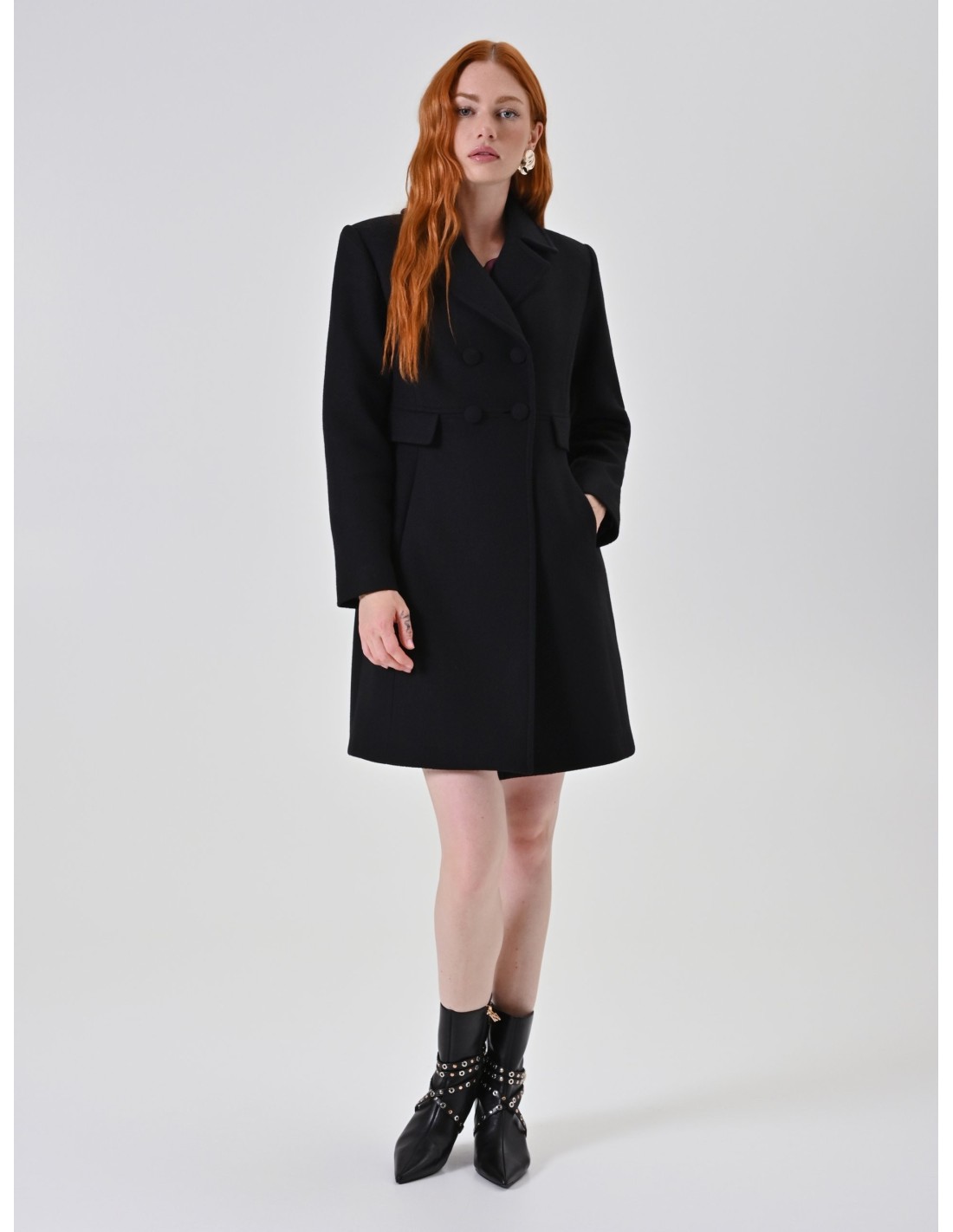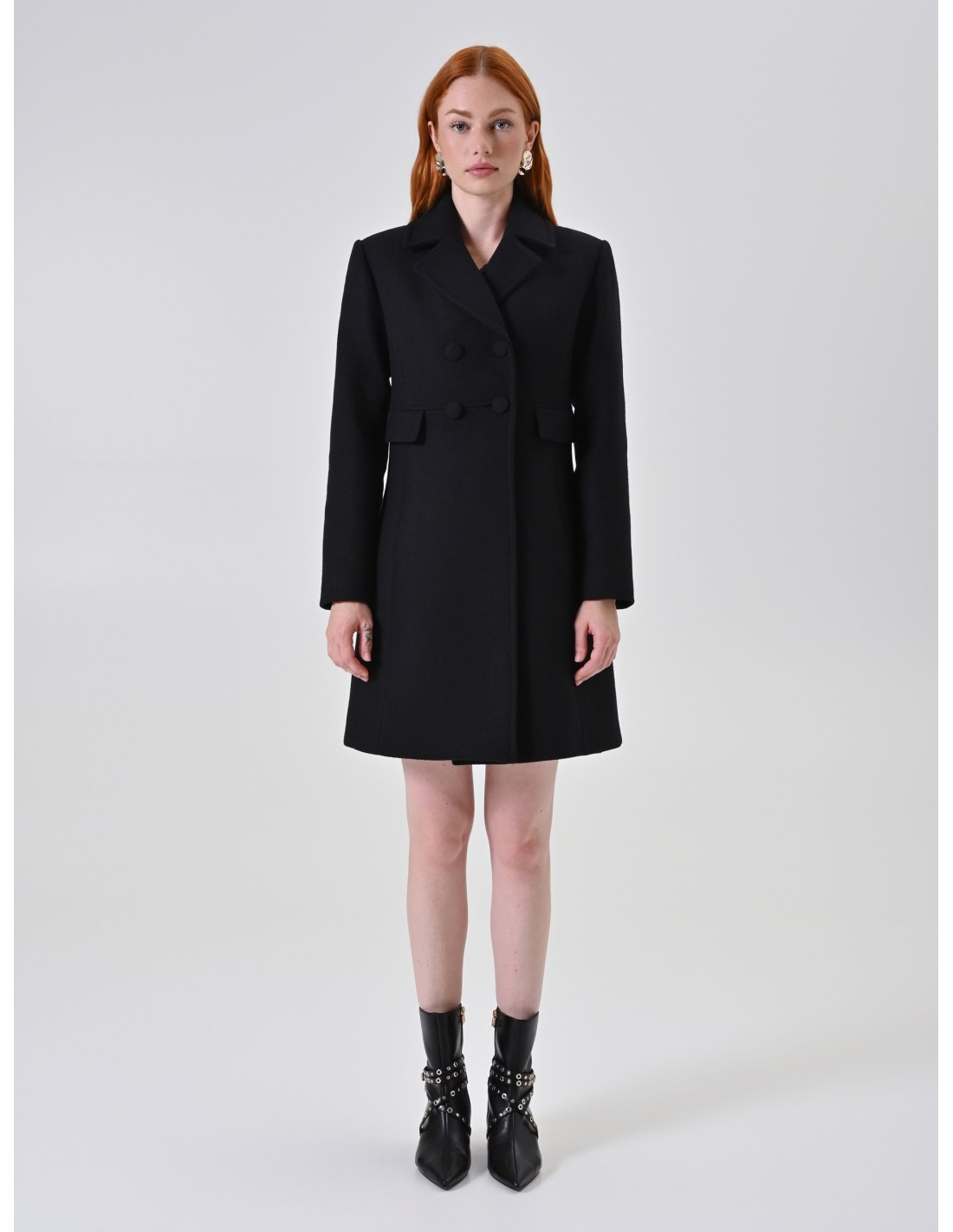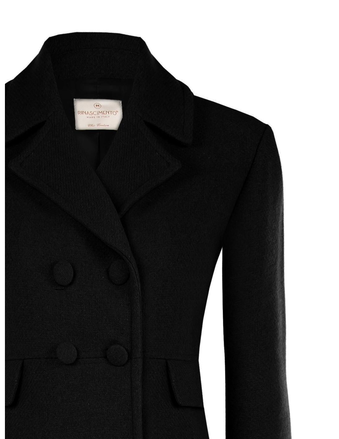 Casaco Rinascimento com corte evasé que valoriza a silhueta sem apertar. Confeccionado em tecido macio de toque quente, com interior forrado para conforto diário. Lapela clássica e peitilho duplo com botões forrados; bolsos com aba para um toque de alfaiataria. Perfeito do escritório ao aperitivo, também por cima de vestidos.