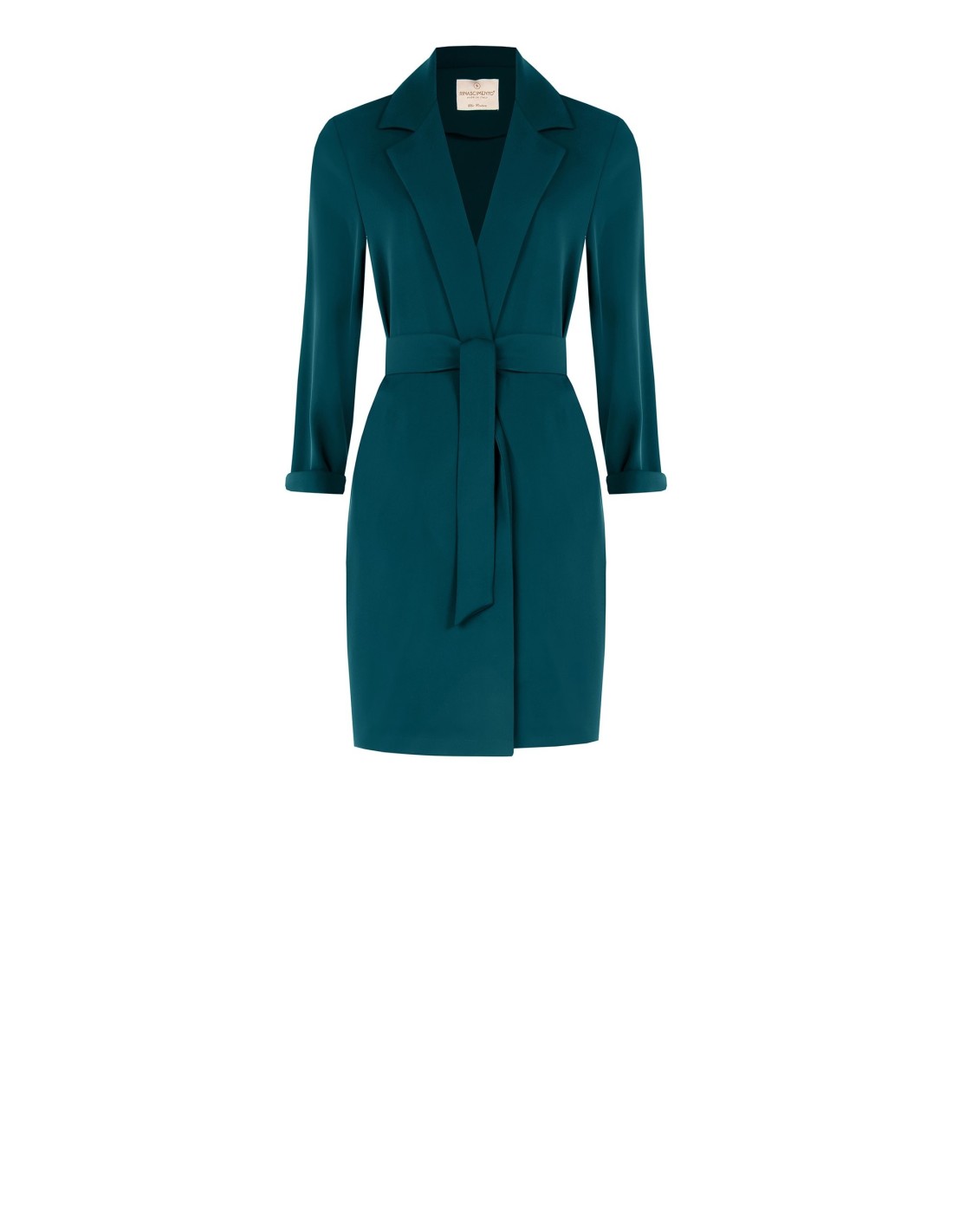 Jaqueta midi de corte reto com cinto removível: realça a cintura sem sacrificar o conforto. Confeccionado num tecido fluido e ligeiramente elástico, apresenta lapelas pontiagudas e mangas 3/4 com abertura. Perfeito sobre vestidos e calças de ganga para o escritório ou aperitivos, também é versátil como camada para a noite.