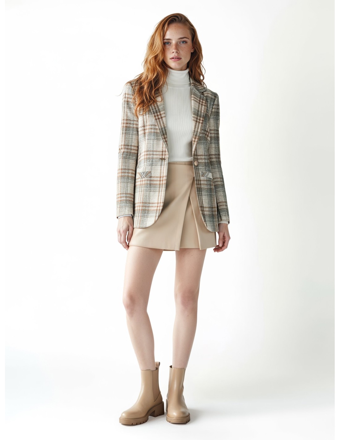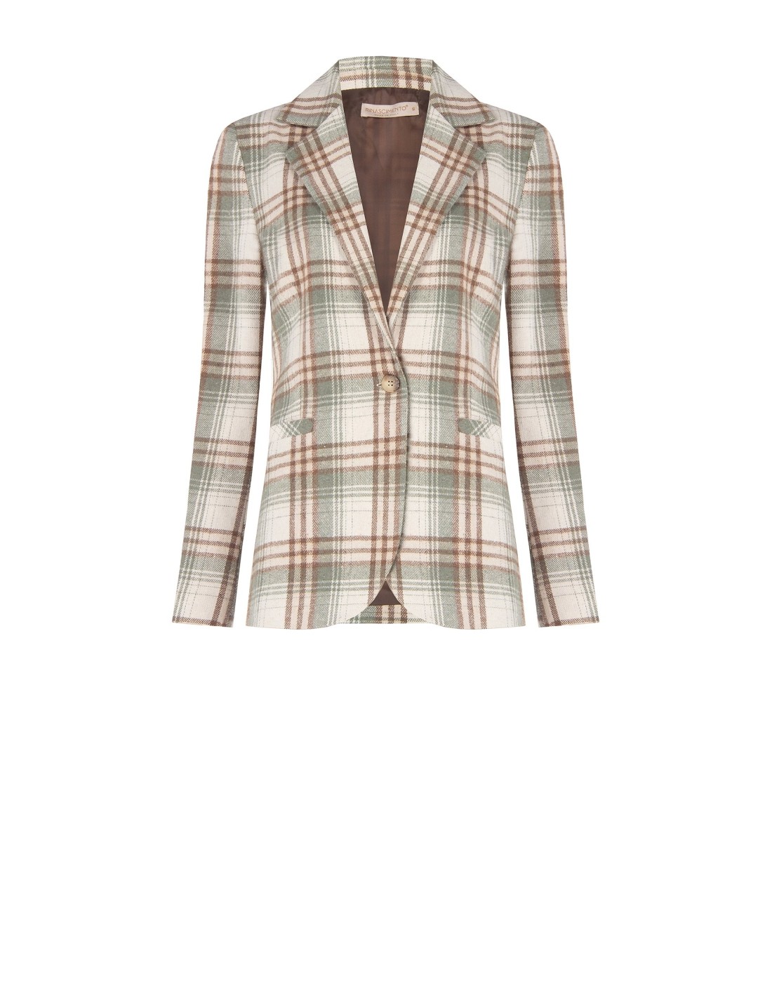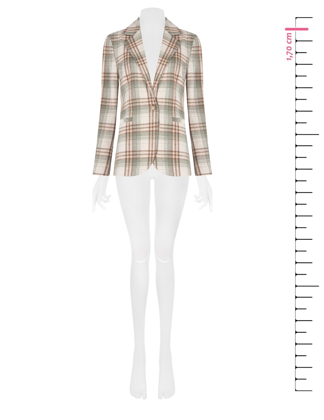 Blazer Rinascimento de corte slim que valoriza a silhueta sem apertar. Tecido macio ao toque e quente com padrão xadrez e forro escorregadio. Revers clássicos, fecho de um botão e bolsos embutidos. Perfeito para o escritório e para elevar o dia a dia com um toque de carácter.