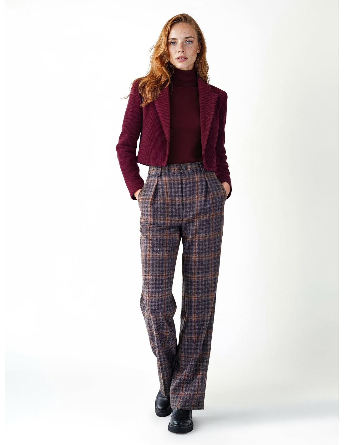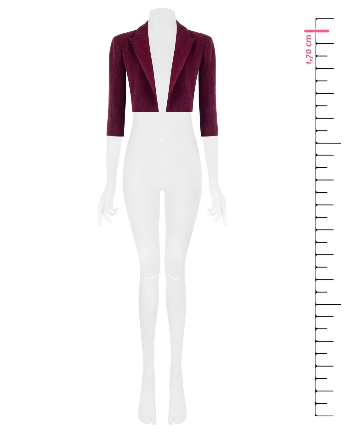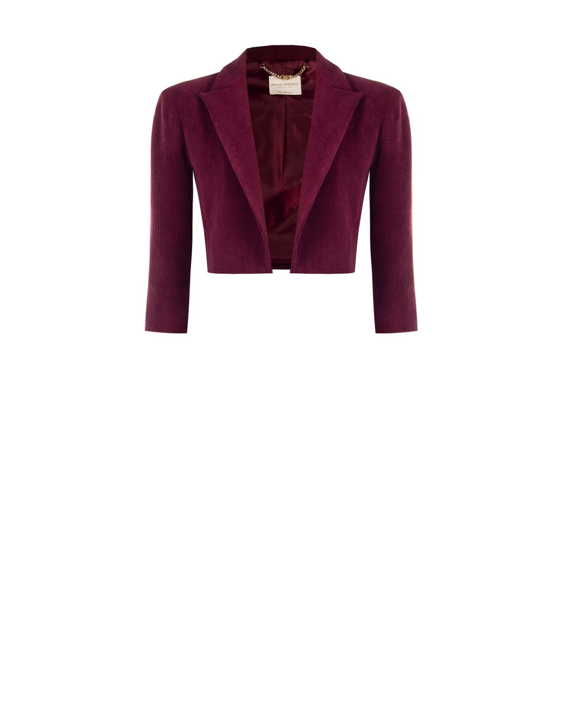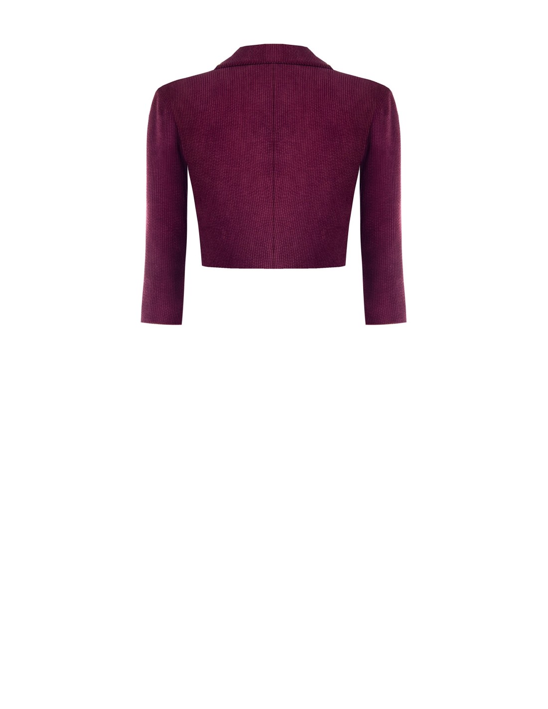 Blazer curto de corte ajustado que valoriza a cintura. Confeccionado em veludo cotelê com forro fluido para conforto e liberdade de movimento. Lapela pontiaguda e manga três quartos acrescentam carácter. Perfeito sobre vestidos ou peças de cintura alta para escritório e aperitivos, ideal para looks em camadas e versáteis.