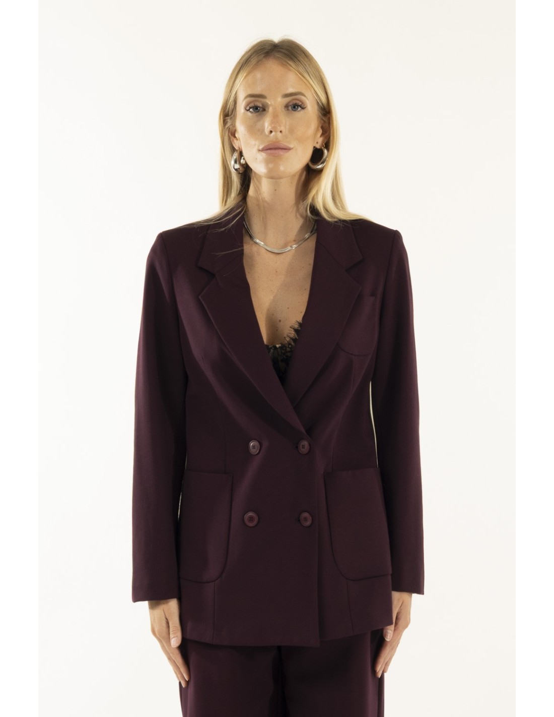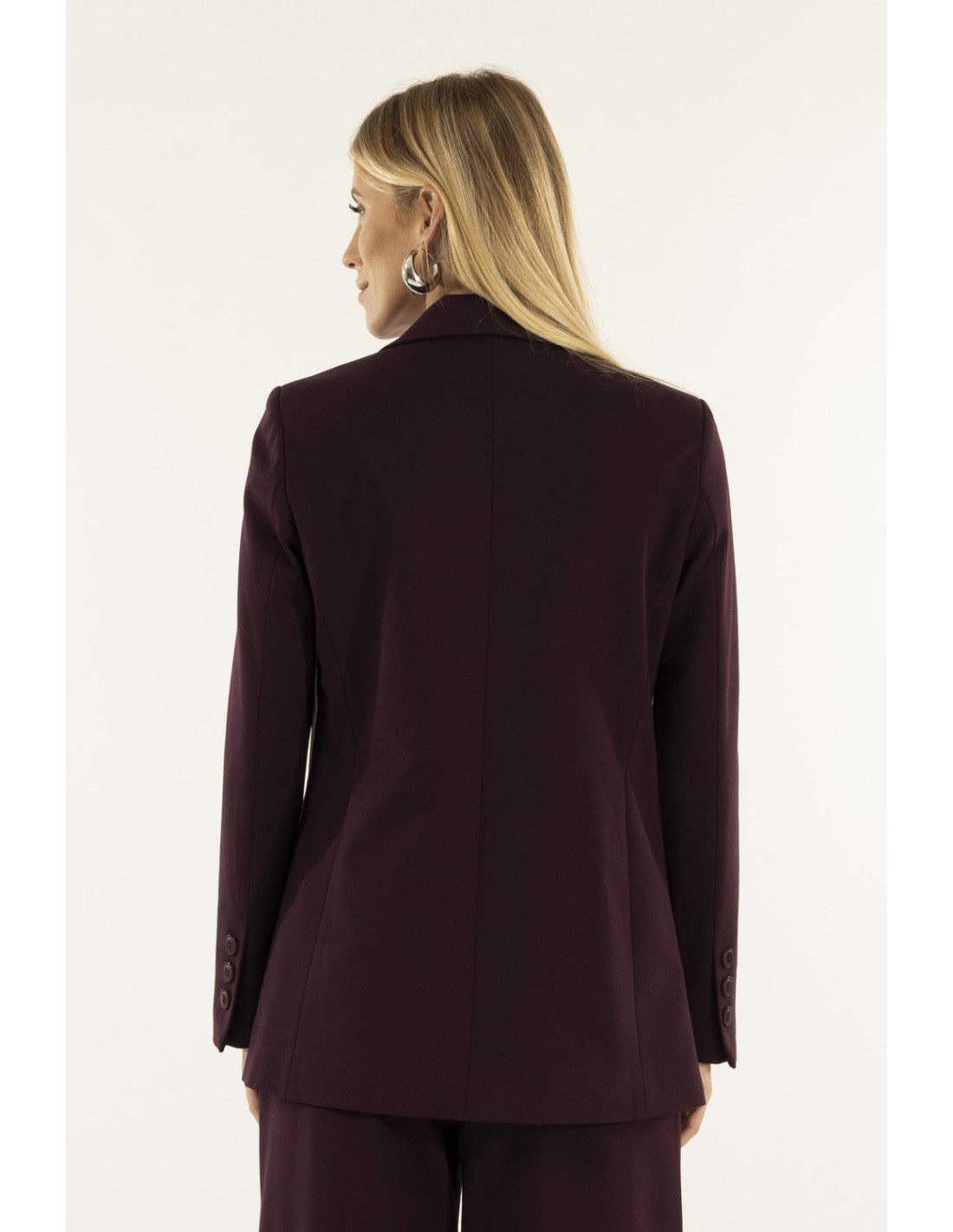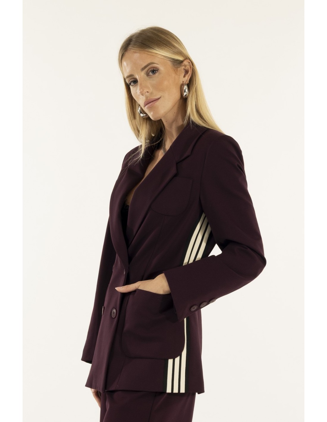 Blazer Kontatto com um corte direito que emagrece a silhueta. Tecido fluido com uma mão suave e ligeira elasticidade para conforto quotidiano. Trespassado com lapelas definidas, bolsos de remendo e faixas laterais às riscas que afinam a cintura. Perfeito para o escritório e para looks de noite com calças ou calças de ganga a condizer.