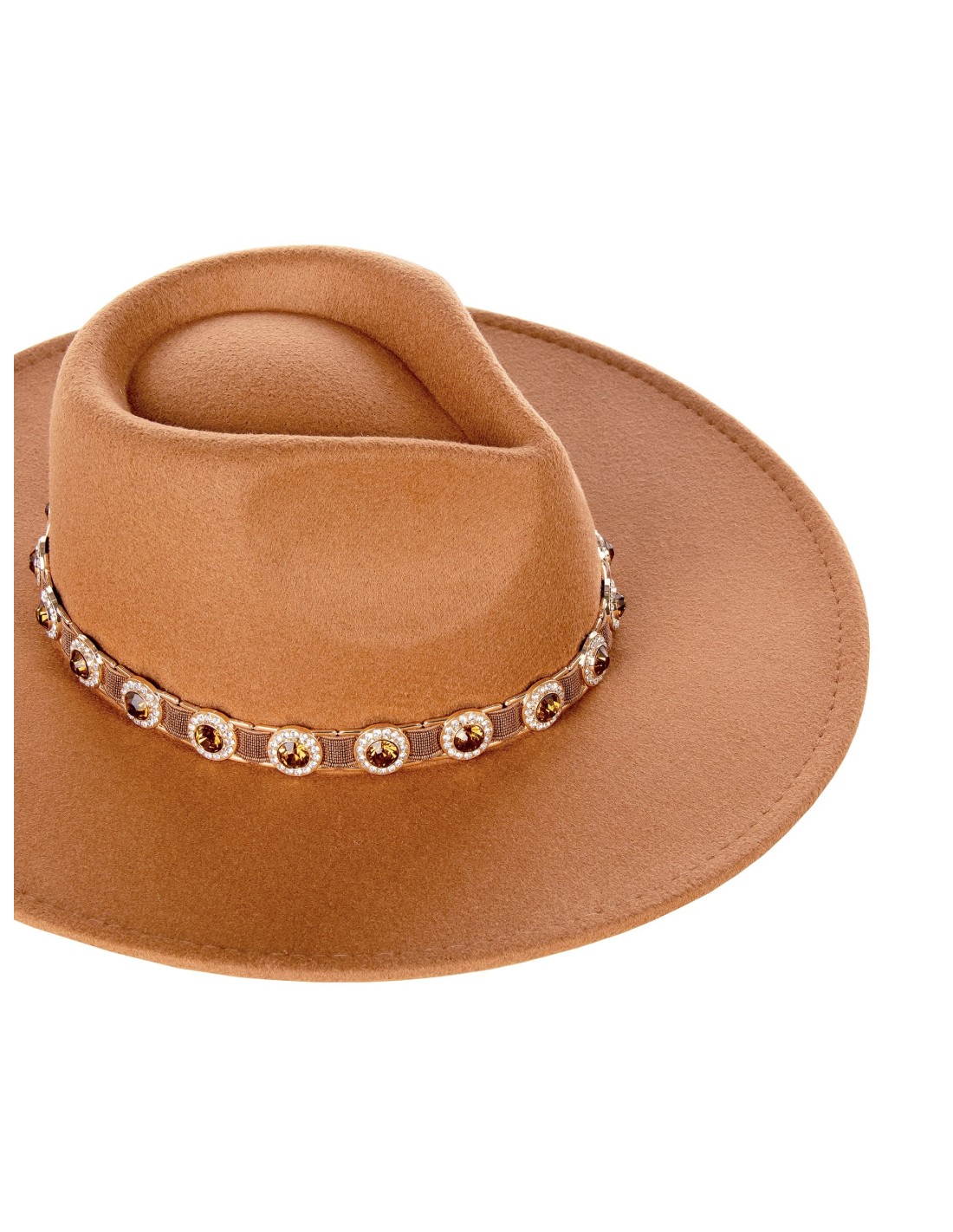 Chapéu Fedora De Abas Largas Com Strass E Pedras Rinascimento