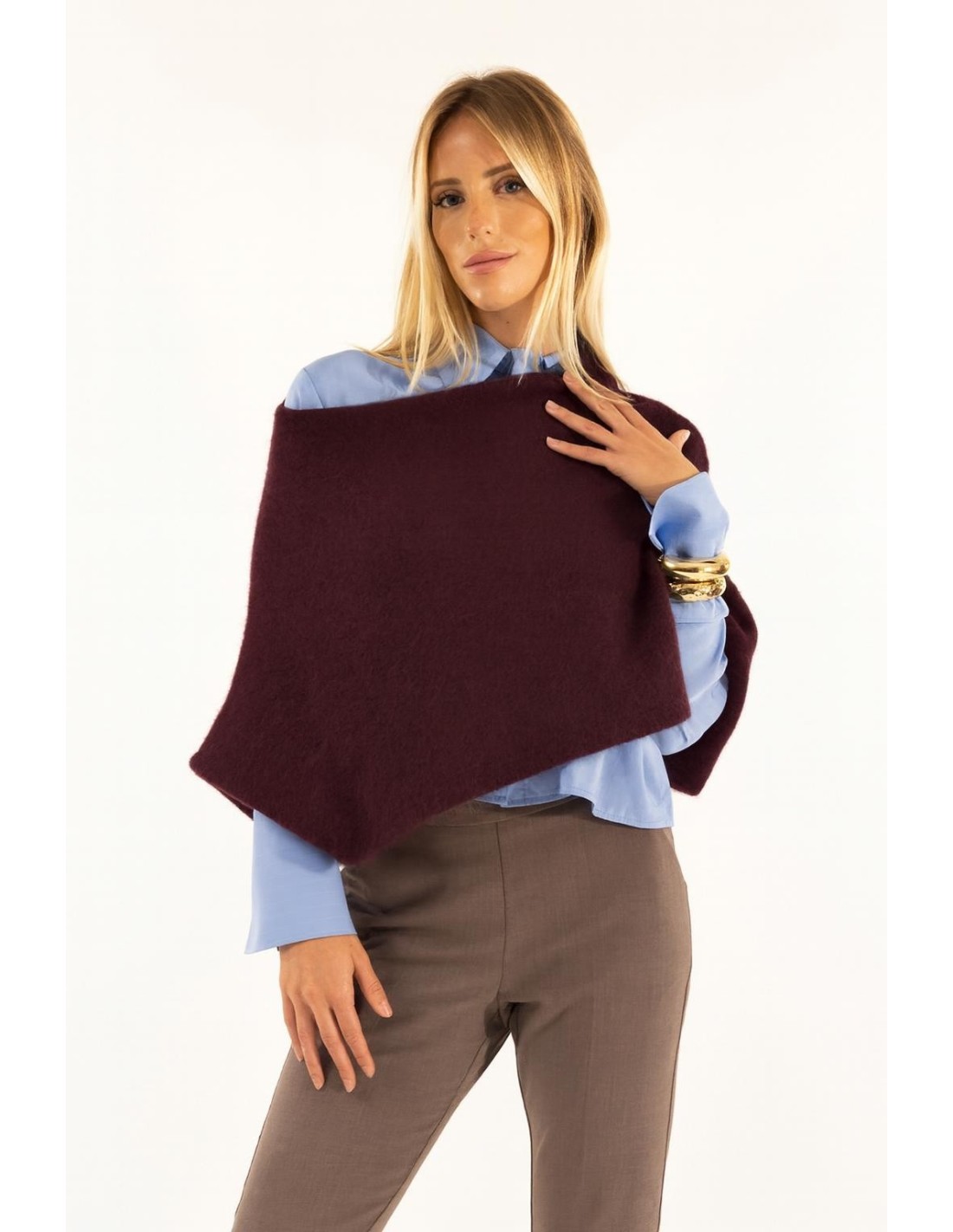 Kontatto assina um poncho acolhedor com um ajuste suave e assimétrico. Malha de efeito escovado suave, com uma mão quente e leve. Pormenor diagonal nos ombros e cantos arredondados para realçar a silhueta. Perfeito sobre camisas e blazers: ideal para o escritório e para o dia a dia chique.