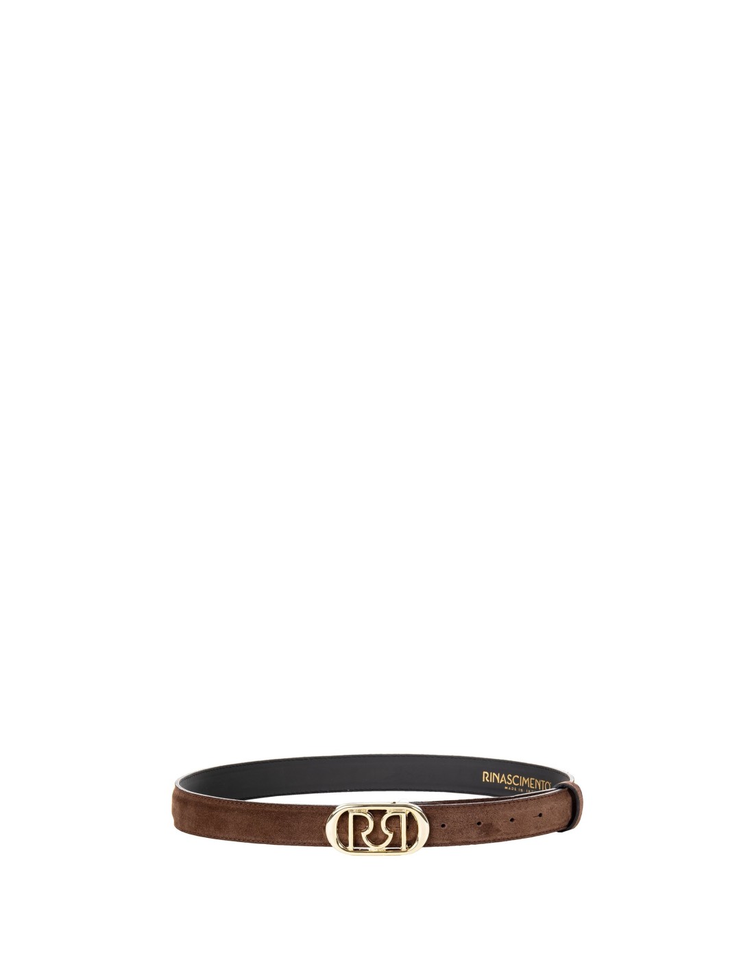 Cinto fino em pele de camurça genuína com fivela com o logótipo RR Rinascimento
