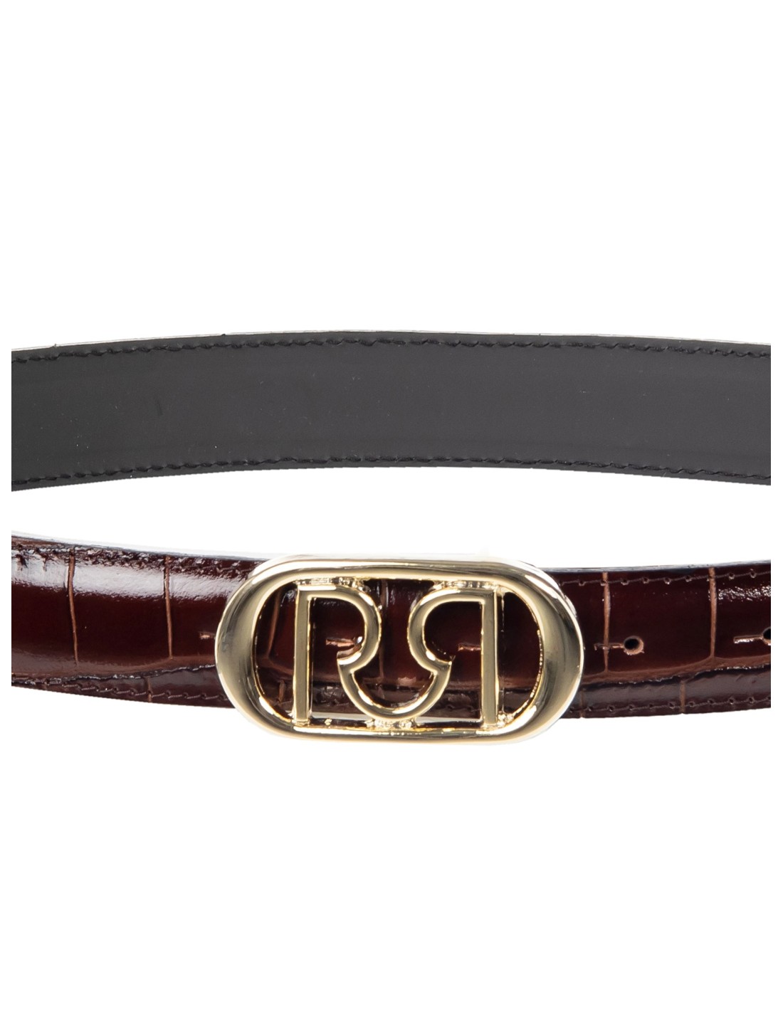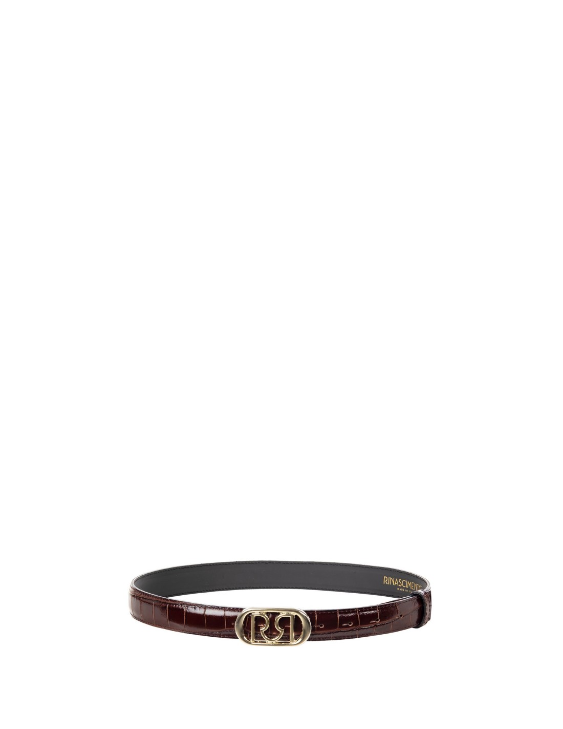 Cinto Fino Em Pele De Crocodilo Genuína Com Fivela Com Logótipo RR Rinascimento