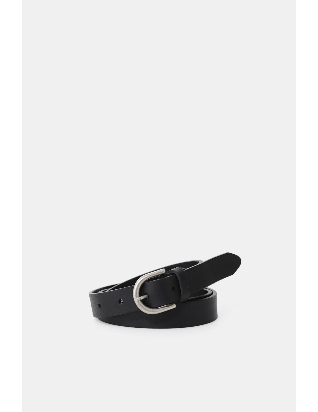 Este cinto apresenta uma silhueta fina e ao mesmo tempo marcante, valorizado pela fivela oval em metal fosco de gosto intemporal. Ideal para adicionar carácter a calças e saias do dia a dia, tem vários furos para um ajuste simples: imagina-o combinado com os teus looks preferidos para um toque refinado mas prático.