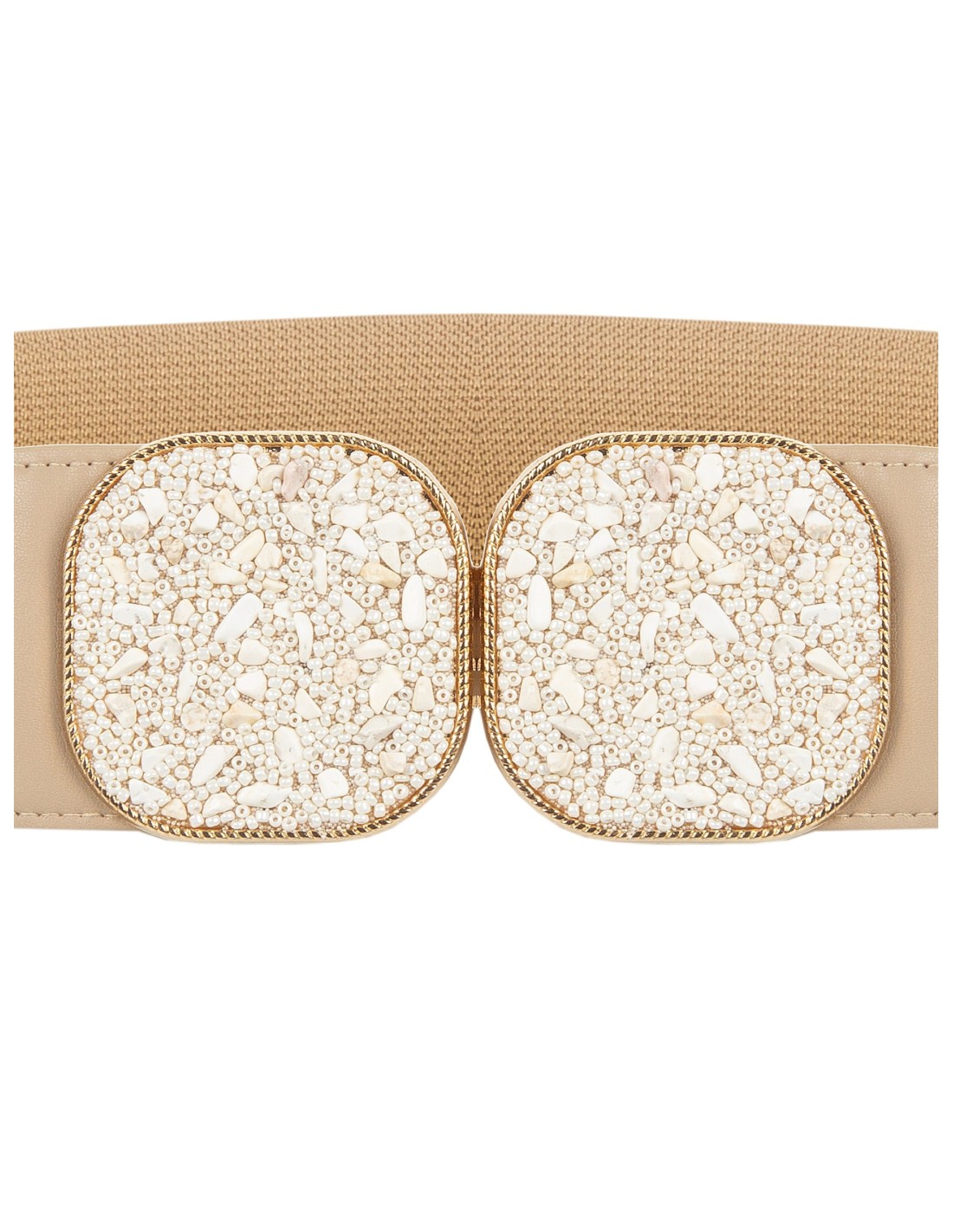 Cintura Elástica Com Maxi Fivela Jóia Quadrada E Micro Pedras Rinascimento