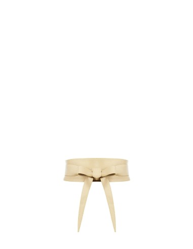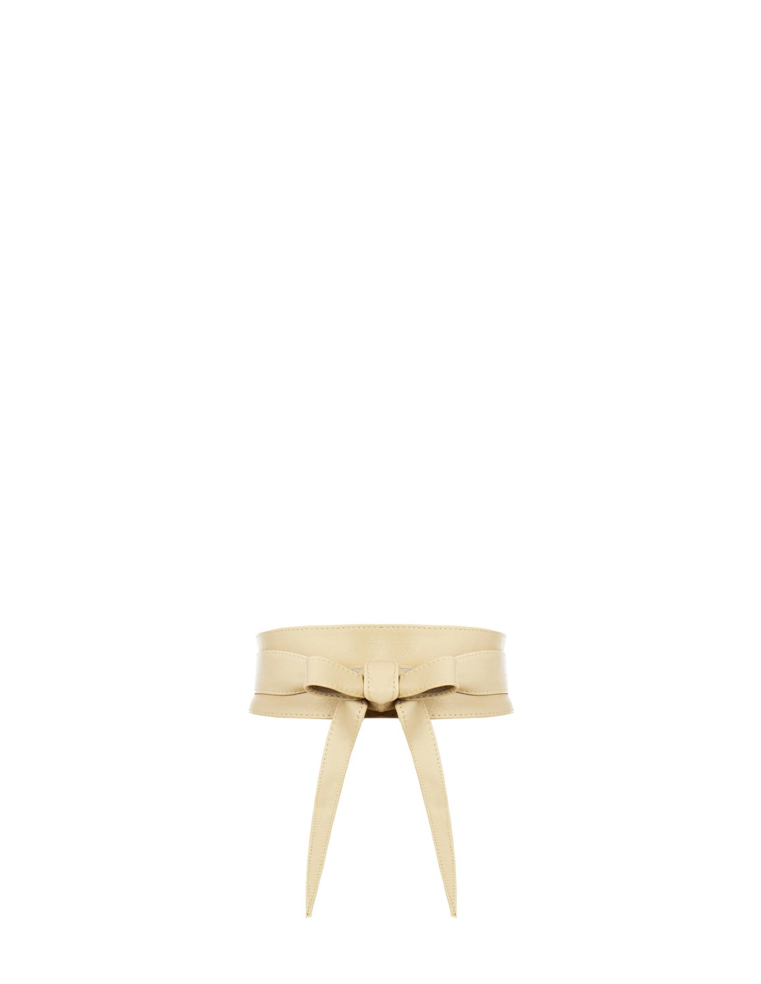 Acessório de cintura alta com um caimento médio-justo que esculpe a silhueta. Confeccionado em pele verdadeira macia, de textura lisa e envolvente. Fita com laço central e longos cordões para atar e regular o fecho. Perfeito sobre vestidos e blazers do escritório ao cocktail, acrescenta carácter e definição a cada look.