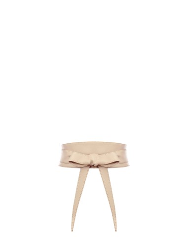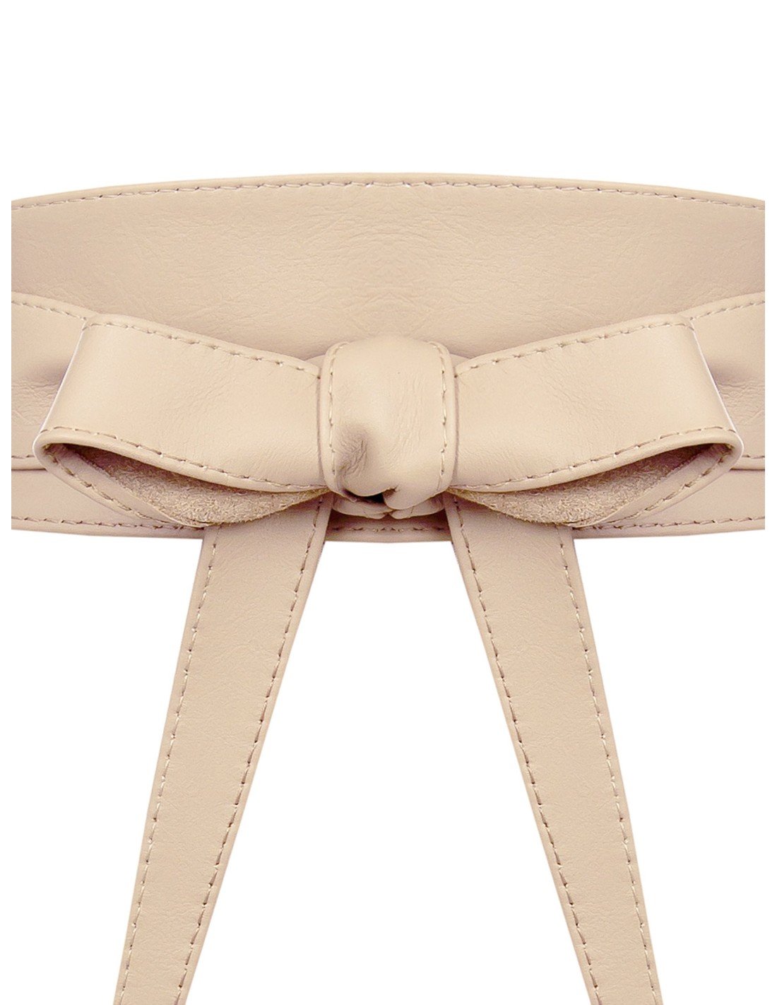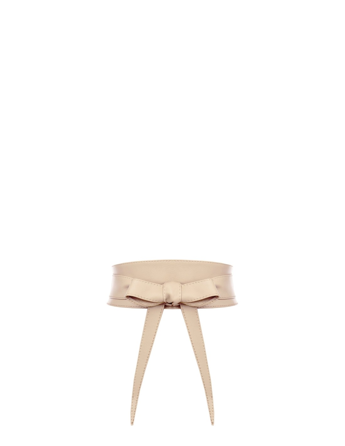 Acessório de cintura alta com um caimento médio-justo que esculpe a silhueta. Confeccionado em pele verdadeira macia, de textura lisa e envolvente. Fita com laço central e longos cordões para atar e regular o fecho. Perfeito sobre vestidos e blazers do escritório ao cocktail, acrescenta carácter e definição a cada look.