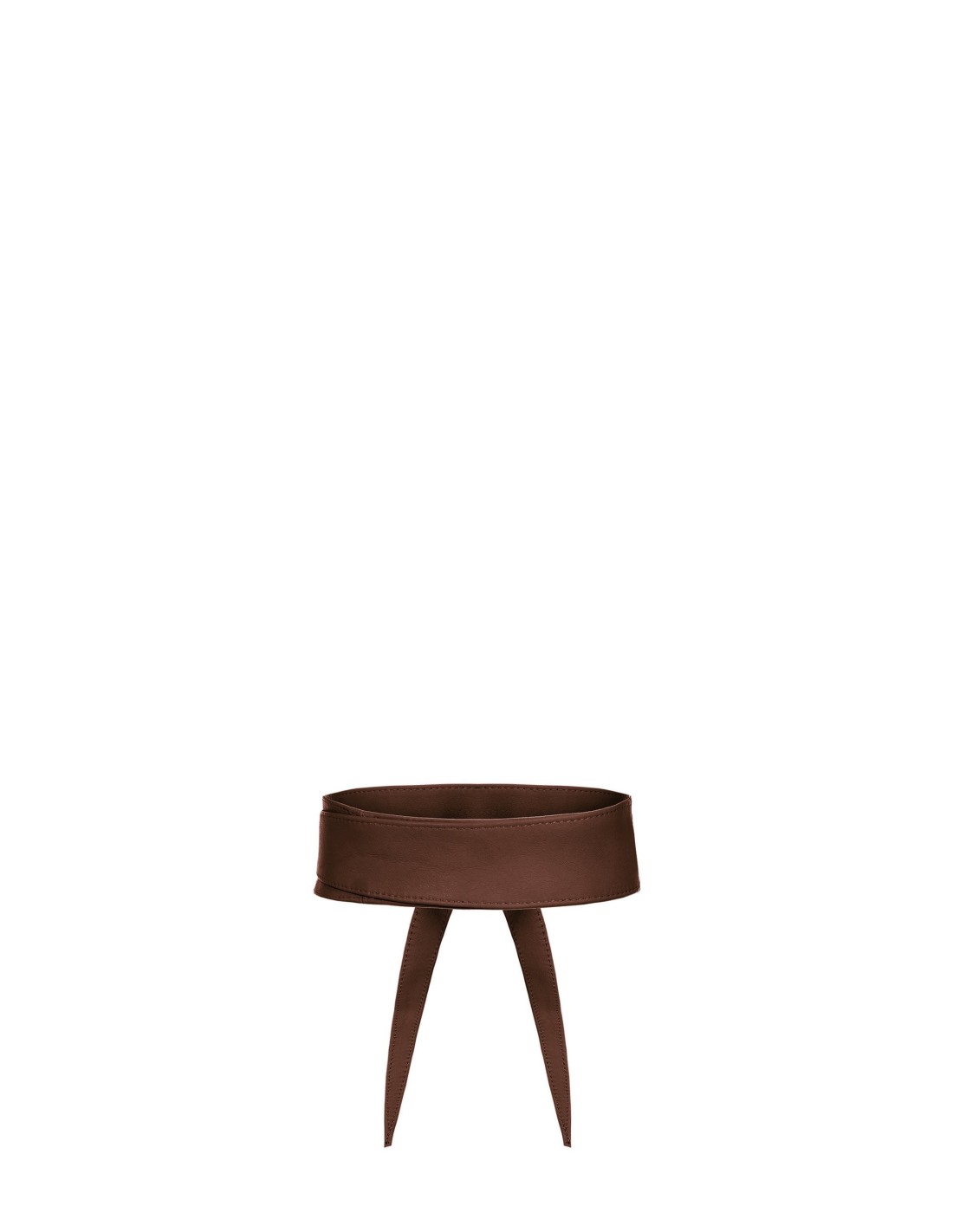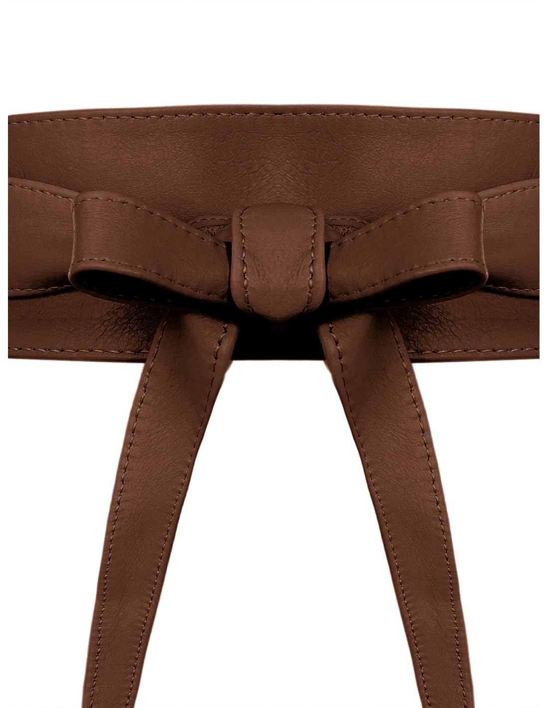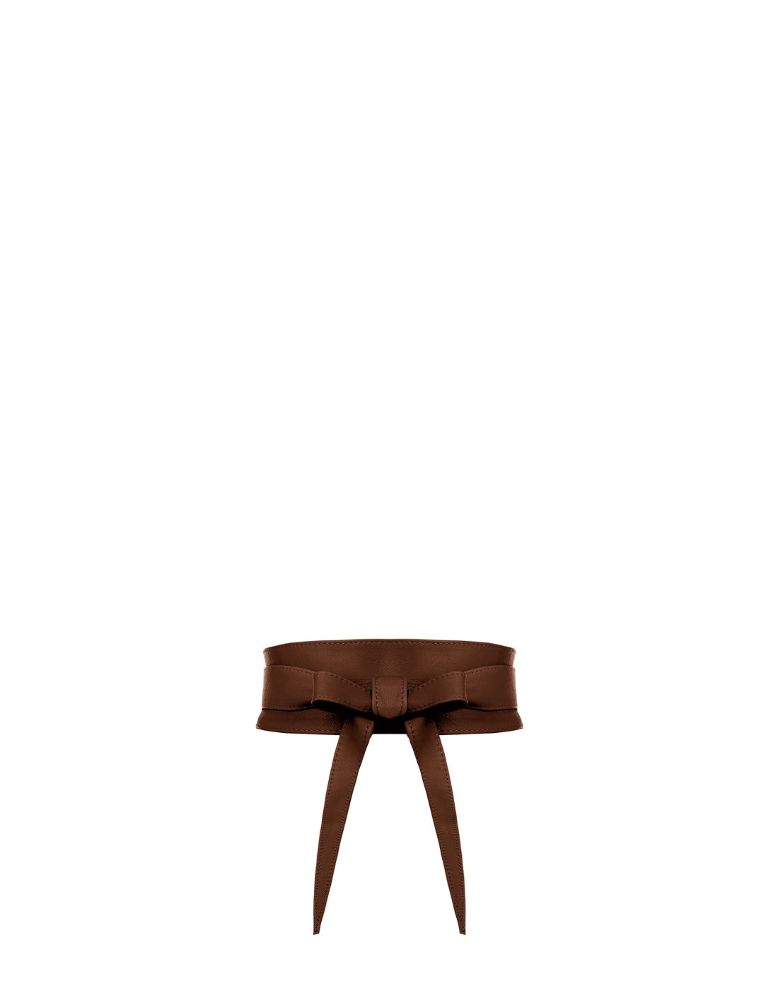 Acessório de cintura alta com um caimento médio-justo que esculpe a silhueta. Confeccionado em pele verdadeira macia, de textura lisa e envolvente. Fita com laço central e longos cordões para atar e regular o fecho. Perfeito sobre vestidos e blazers do escritório ao cocktail, acrescenta carácter e definição a cada look.