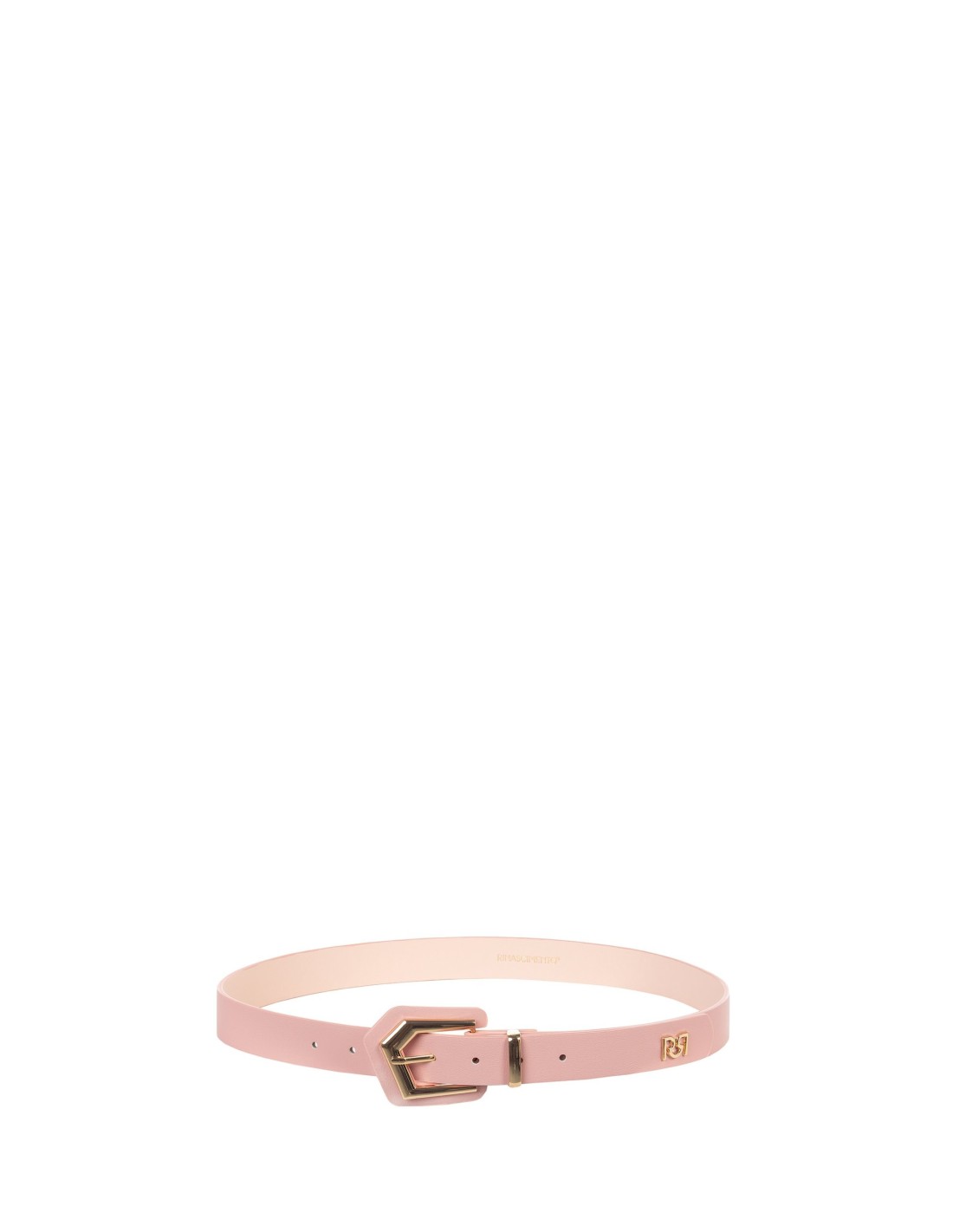 Acessório de faixa estreita em pele sintética lisa, pensado para definir delicadamente a cintura. A fivela metálica de forma gráfica e o logo lateral RS acrescentam carácter. Perfeito com vestidos e calças, do escritório ao aperitivo.
