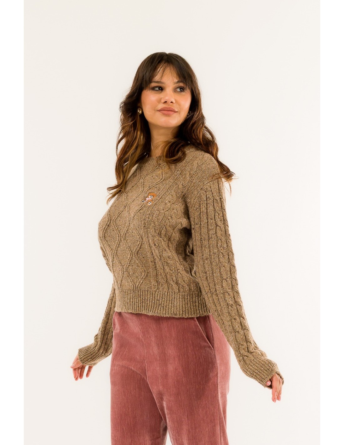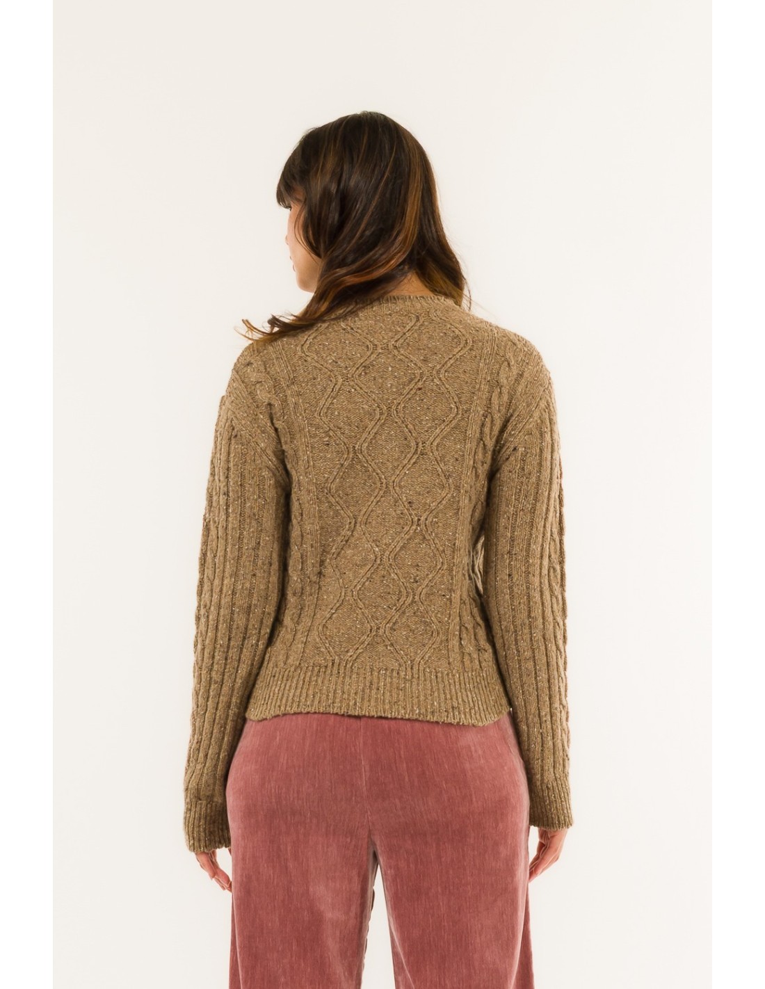 Deixe-se cativar pelo charme intemporal desta camisola, adornada com um requintado padrão de diamantes e detalhes sofisticados. Perfeita para dar um toque de feminilidade sofisticada a qualquer conjunto. Elegância que se destaca, todos os dias.