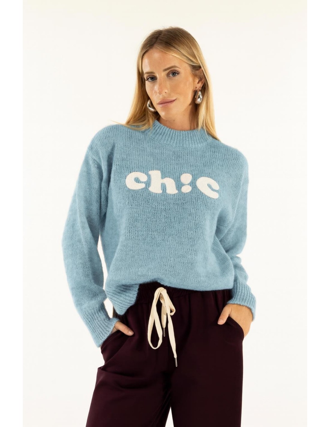 Malha macia de corte descontraído da Kontatto. Fio de efeito fofo com uma mão quente e leve. Gola canelada e letras maxi em relevo que conferem personalidade. Bainhas em malha para um caimento natural que realça a silhueta. Perfeita para o dia a dia sofisticado, escritório casual e fins-de-semana na cidade.