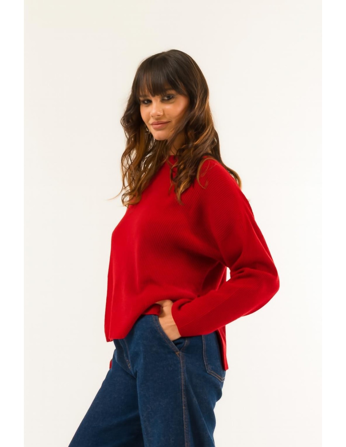 Linhas suaves e detalhes refinados: esta camisola confere elegância sem esforço a todos os conjuntos. O tricô com nervuras e as fendas laterais realçam a silhueta com um gosto contemporâneo. Perfeita para quem gosta de se destacar com estilo e conforto.