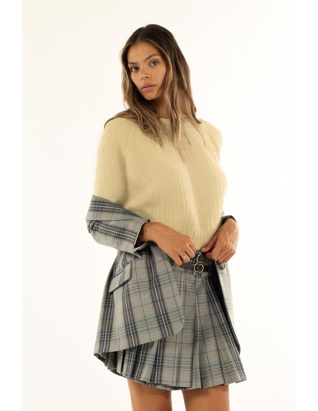 Kontatto interpreta a camisola com um corte suave e feminino: fio de efeito plush macio com acabamento tridimensional que envolve sem pesar. A gola redonda e os punhos ajustados definem a silhueta. Perfeito com calças de ganga ou minis plissados, do escritório ao lazer.