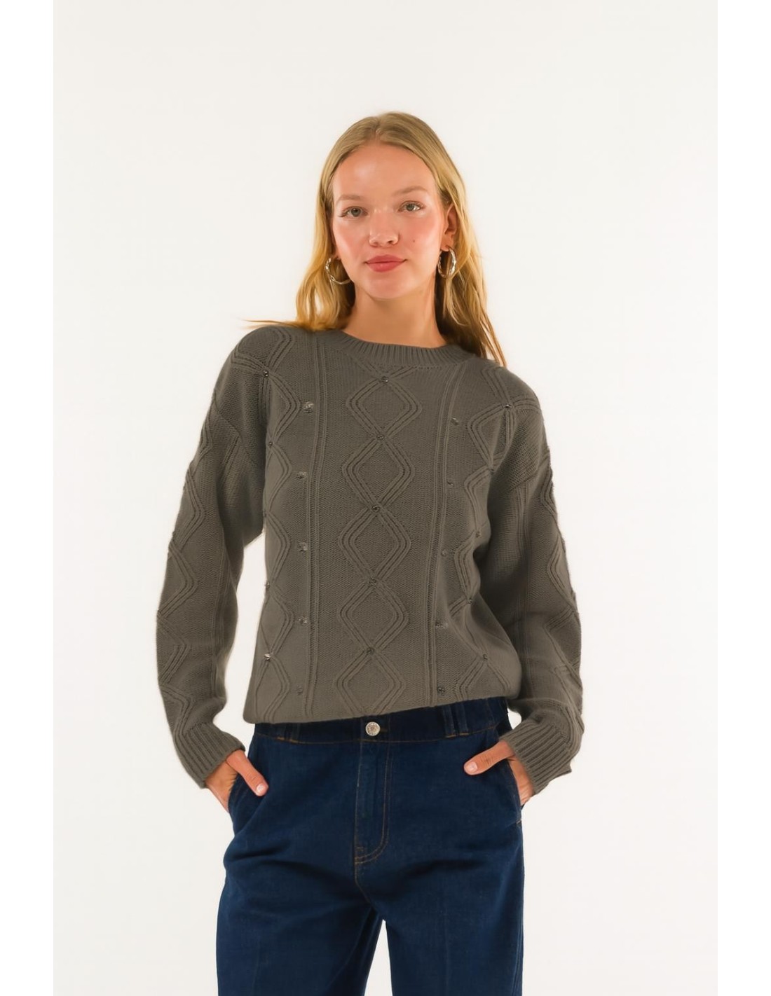 Um tecido geométrico refinado iluminado por delicados detalhes brilhantes: esta camisola embeleza cada roupa com um toque sofisticado e feminino. Perfeita para a acompanhar com elegância em qualquer ocasião.