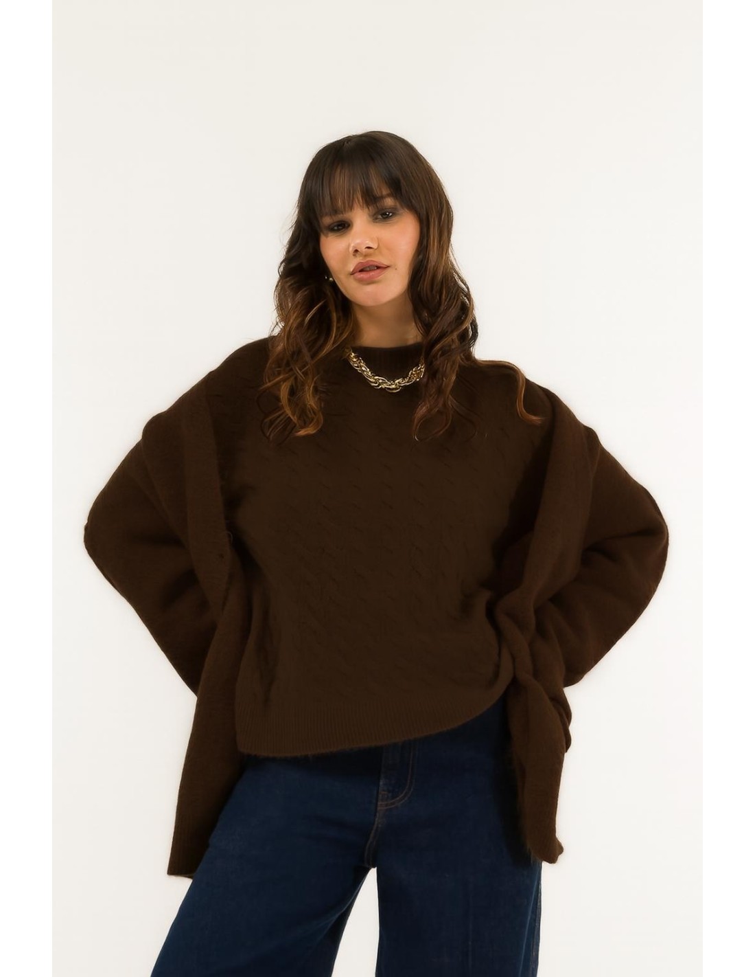 Envolva-se numa camisola com um design requintado, adornada com um delicado trabalho em trança. Perfeita para realçar o seu estilo com uma elegância intemporal e uma suavidade que a conquista à primeira vista. Para mulheres que gostam de se destacar.