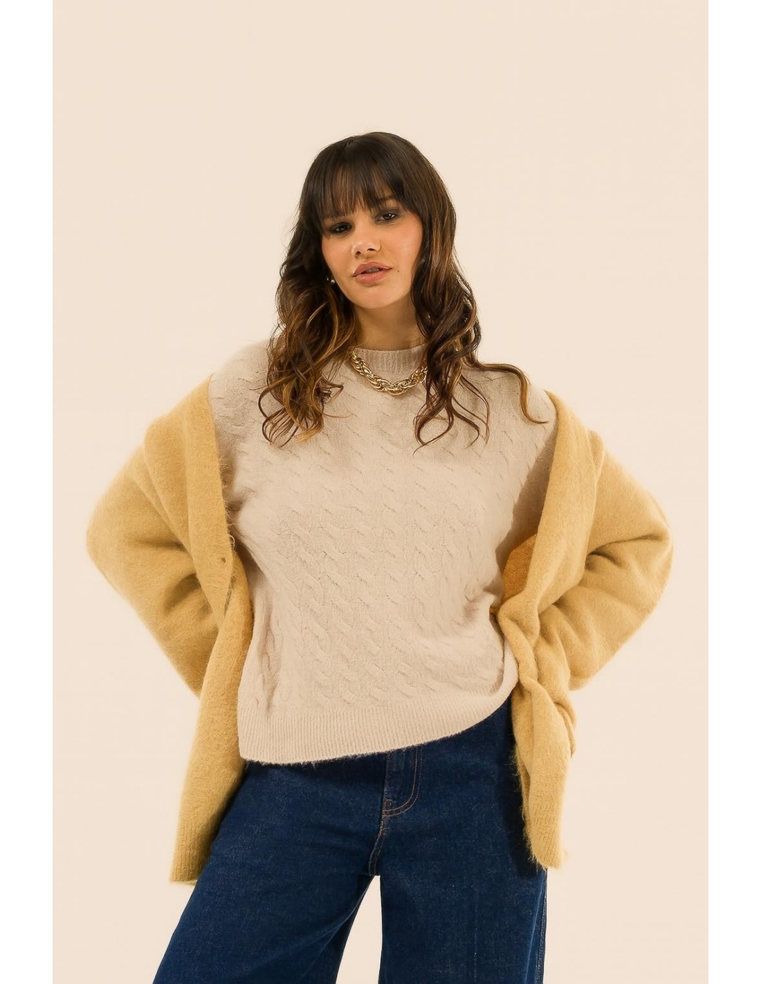 Envolva-se numa camisola com um design requintado, adornada com um delicado trabalho em trança. Perfeita para realçar o seu estilo com uma elegância intemporal e uma suavidade que a conquista à primeira vista. Para mulheres que gostam de se destacar.