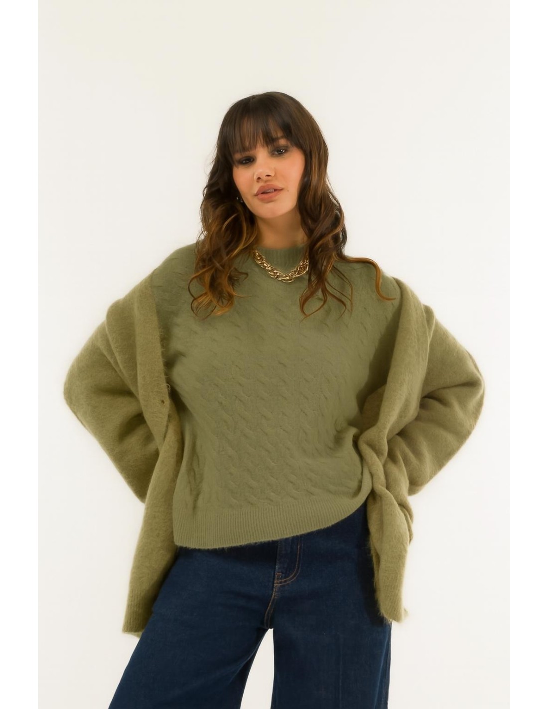 Envolva-se numa camisola com um design requintado, adornada com um delicado trabalho em trança. Perfeita para realçar o seu estilo com uma elegância intemporal e uma suavidade que a conquista à primeira vista. Para mulheres que gostam de se destacar.