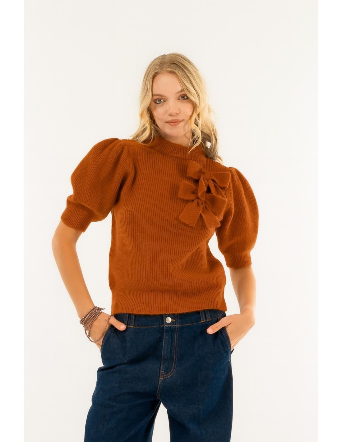 Linhas suaves, mangas bufantes e laços decorativos refinados transformam esta camisola numa peça de vestuário icónica e sofisticada. Perfeita para realçar o seu estilo quotidiano com um toque romântico e exclusivo. Deixe-se cativar pela sua feminilidade.