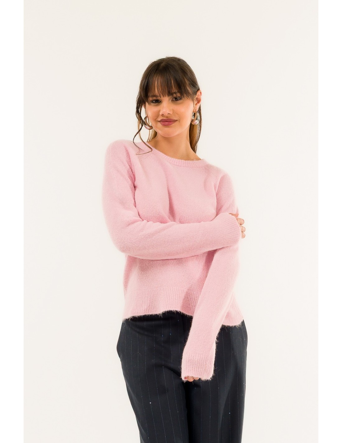 Envolva-se numa suave carícia de estilo: uma camisola com um design refinado e linhas essenciais, perfeita para realçar cada look. Uma peça versátil que realça a sua feminilidade com uma elegância discreta e um charme irresistível.