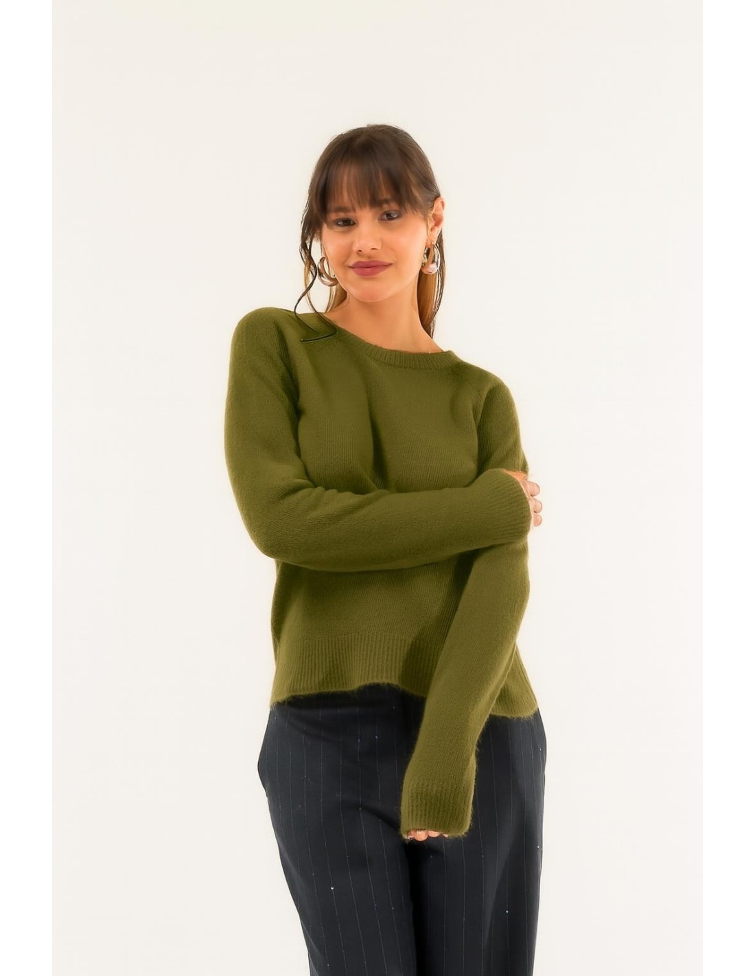 Envolva-se numa suave carícia de estilo: uma camisola com um design refinado e linhas essenciais, perfeita para realçar cada look. Uma peça versátil que realça a sua feminilidade com uma elegância discreta e um charme irresistível.