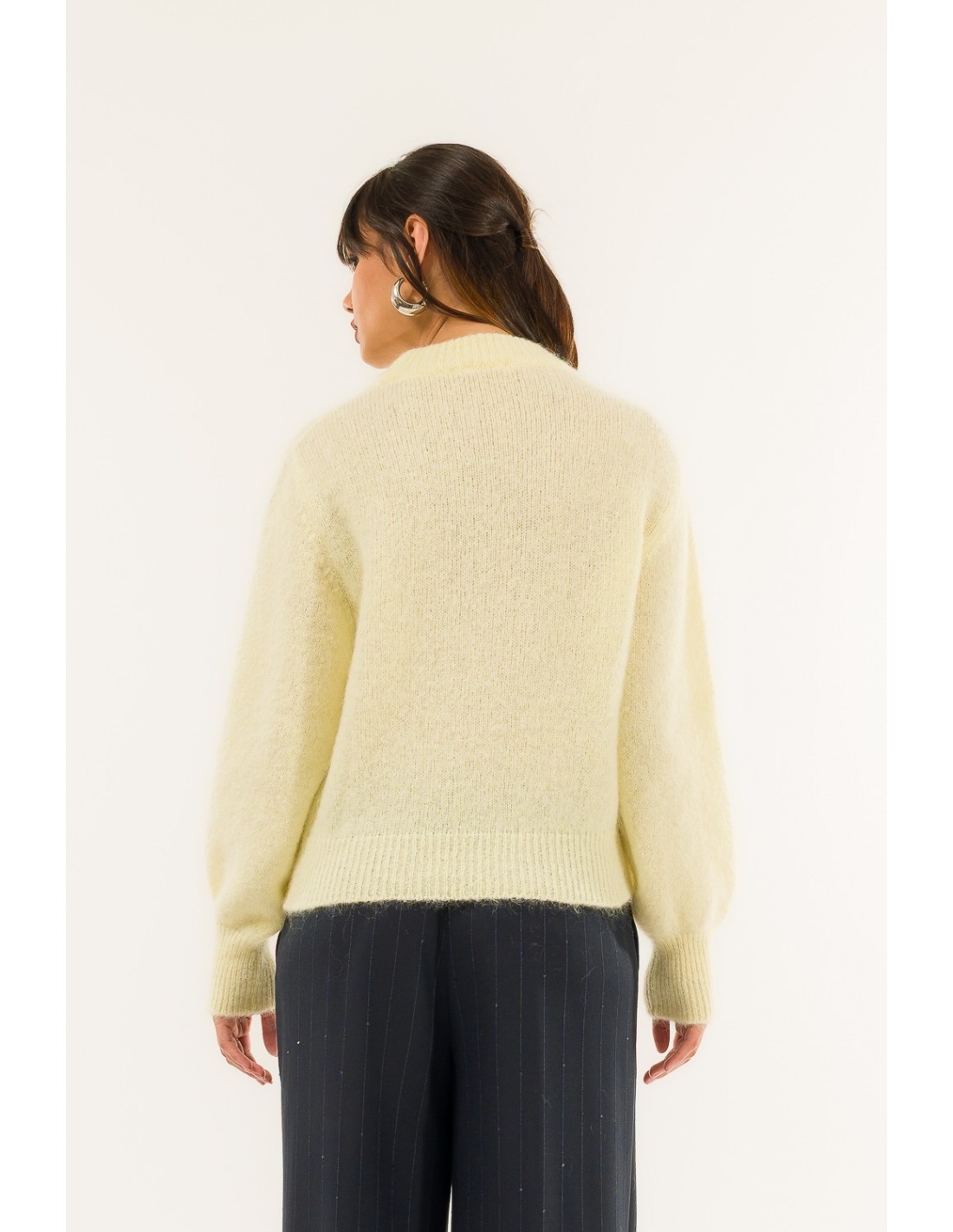 Envolva-se numa carícia suave com esta camisola de design essencial e requintado. Perfeita para dar um toque sofisticado e feminino aos seus looks do dia a dia, promete conforto e elegância a qualquer hora do dia.