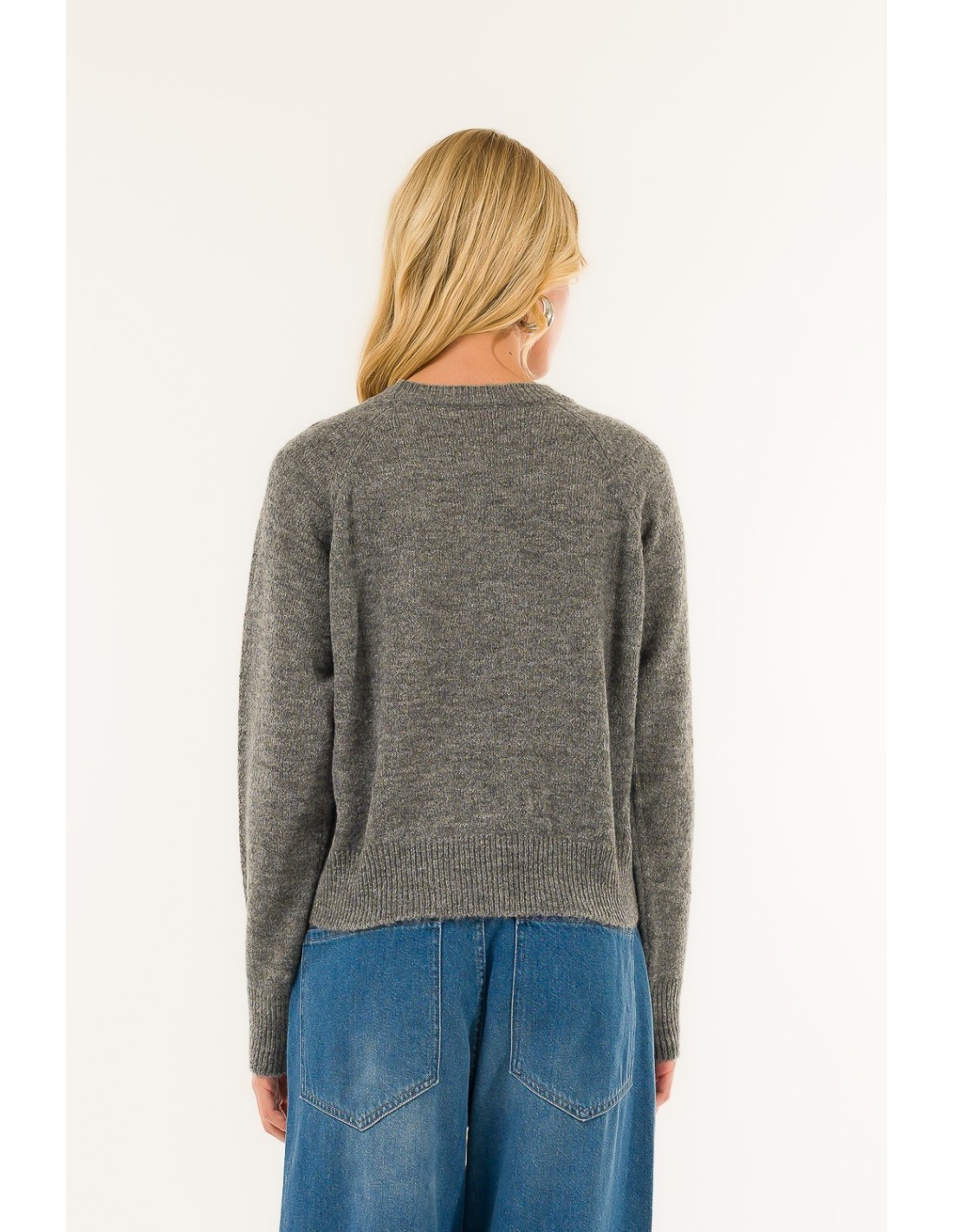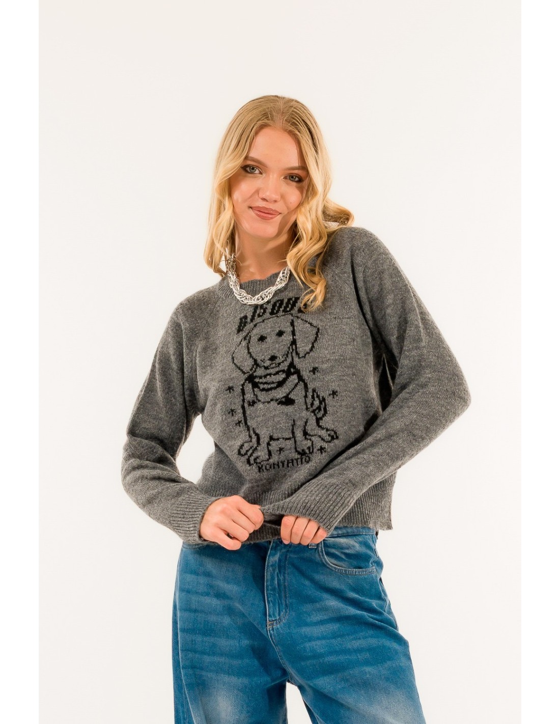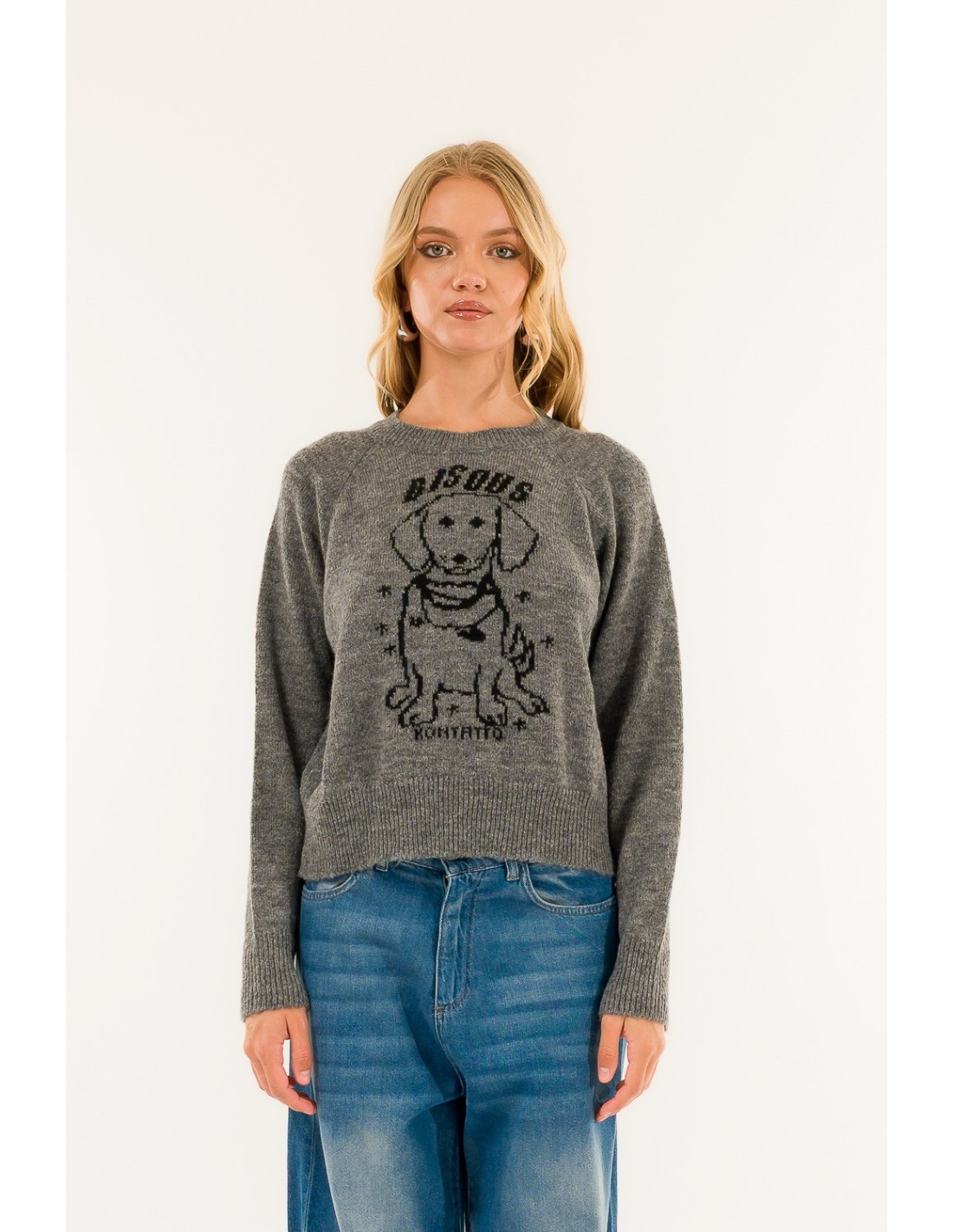 Jersey Kontatto com um corte suave e ligeiramente curto, desenha uma silhueta descontraída sem sacrificar a feminilidade. Fio macio com uma mão quente e confortável. Estampado à frente com um cãozinho e rebordos canelados na gola, nos punhos e na bainha. Perfeito para o dia a dia e para o lazer, para usar com calças de ganga ou saias midi.