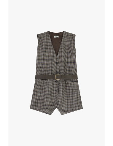 Colete Com Padrão Houndstooth E Cinto Dixie