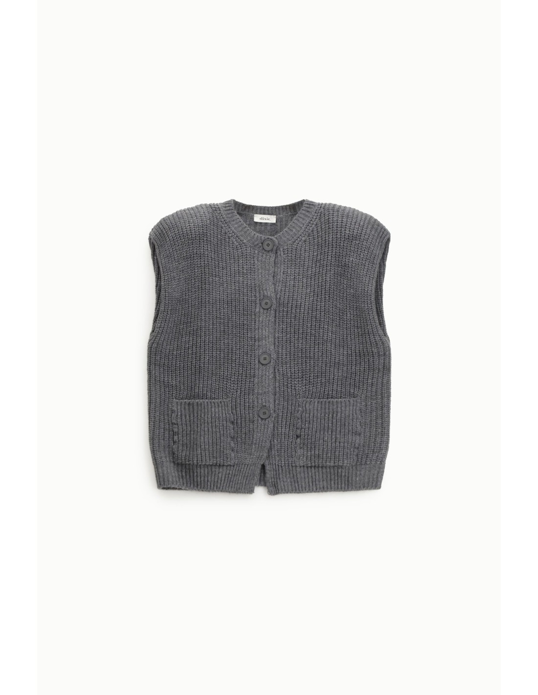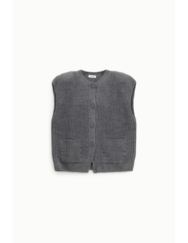 Colete de malha de linhas direitas, ombros ligeiramente descaídos e prático fecho de botões. Os bolsos de remendo à frente dão um toque lúdico e funcional, perfeito para usar por cima de uma blusa ou t-shirt. Perfeito para um estilo feminino que não abdica do conforto nos dias mais frios.