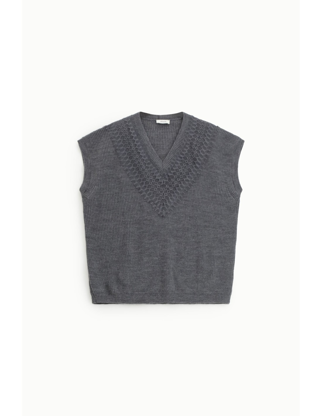 Colete de malha com decote em V e pormenores perfurados Dixie