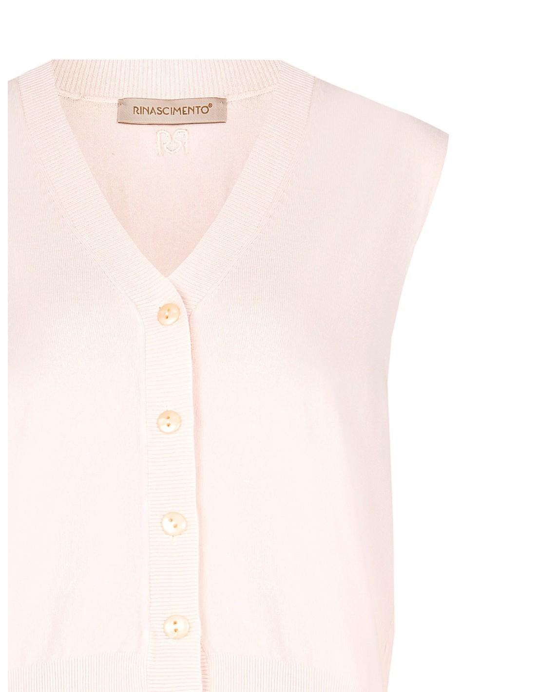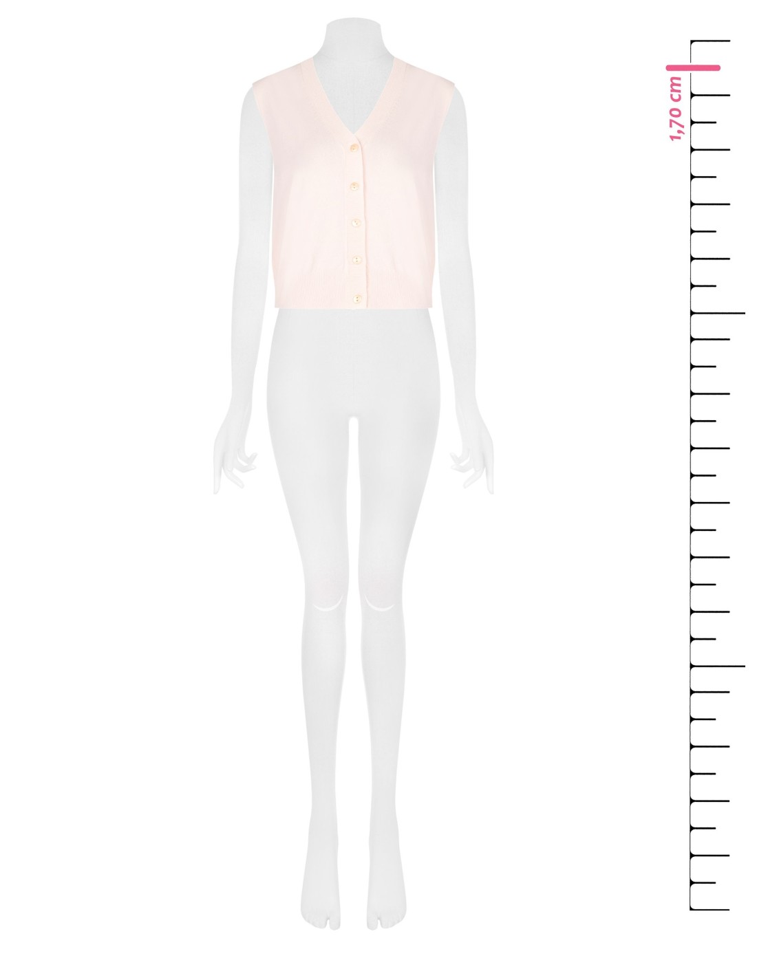 Top sem mangas em malha suave com mistura de viscose, de corte relaxado que acaricia a silhueta com conforto. O decote em V e o fecho frontal com botões acrescentam um toque refinado e versátil, perfeito para o escritório e para looks do dia a dia cuidados.