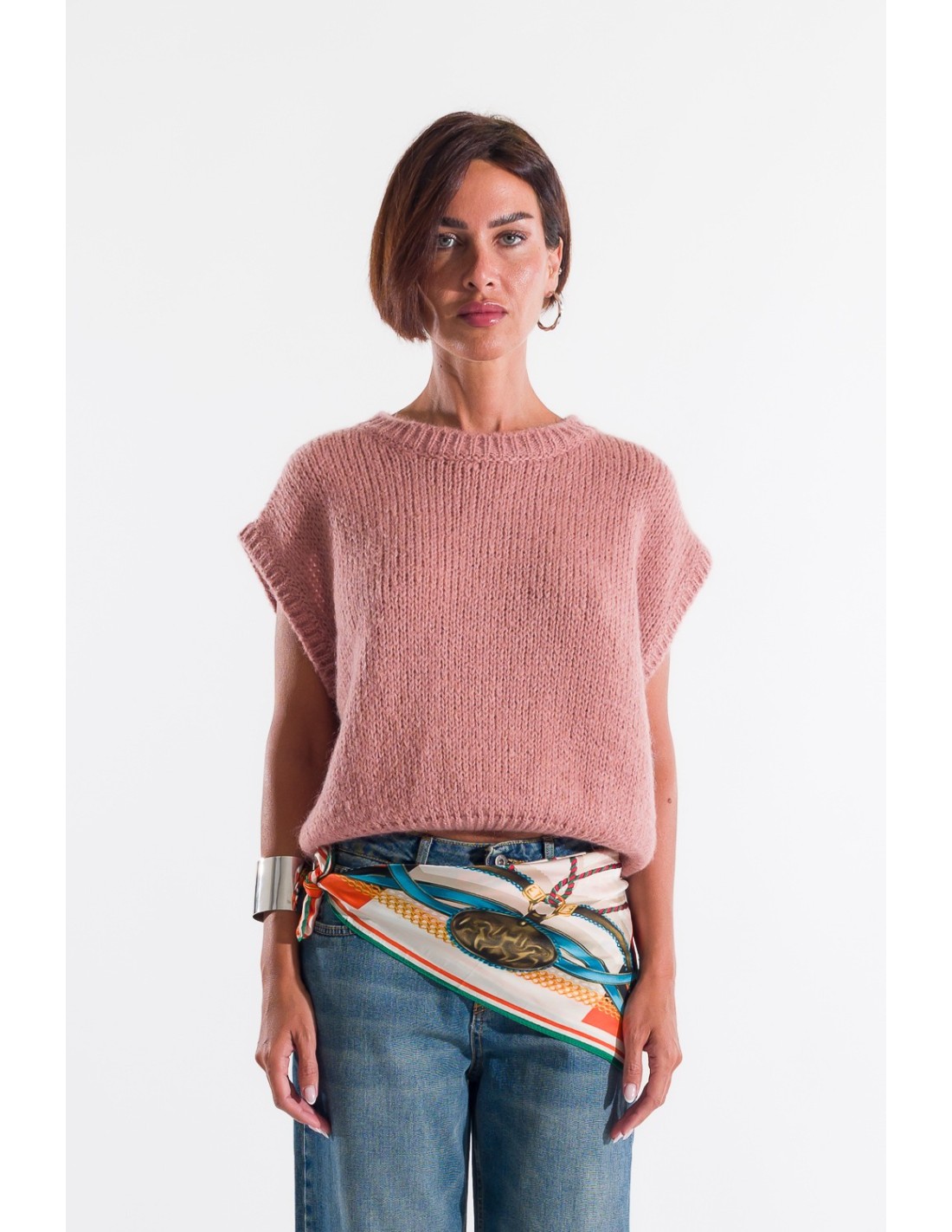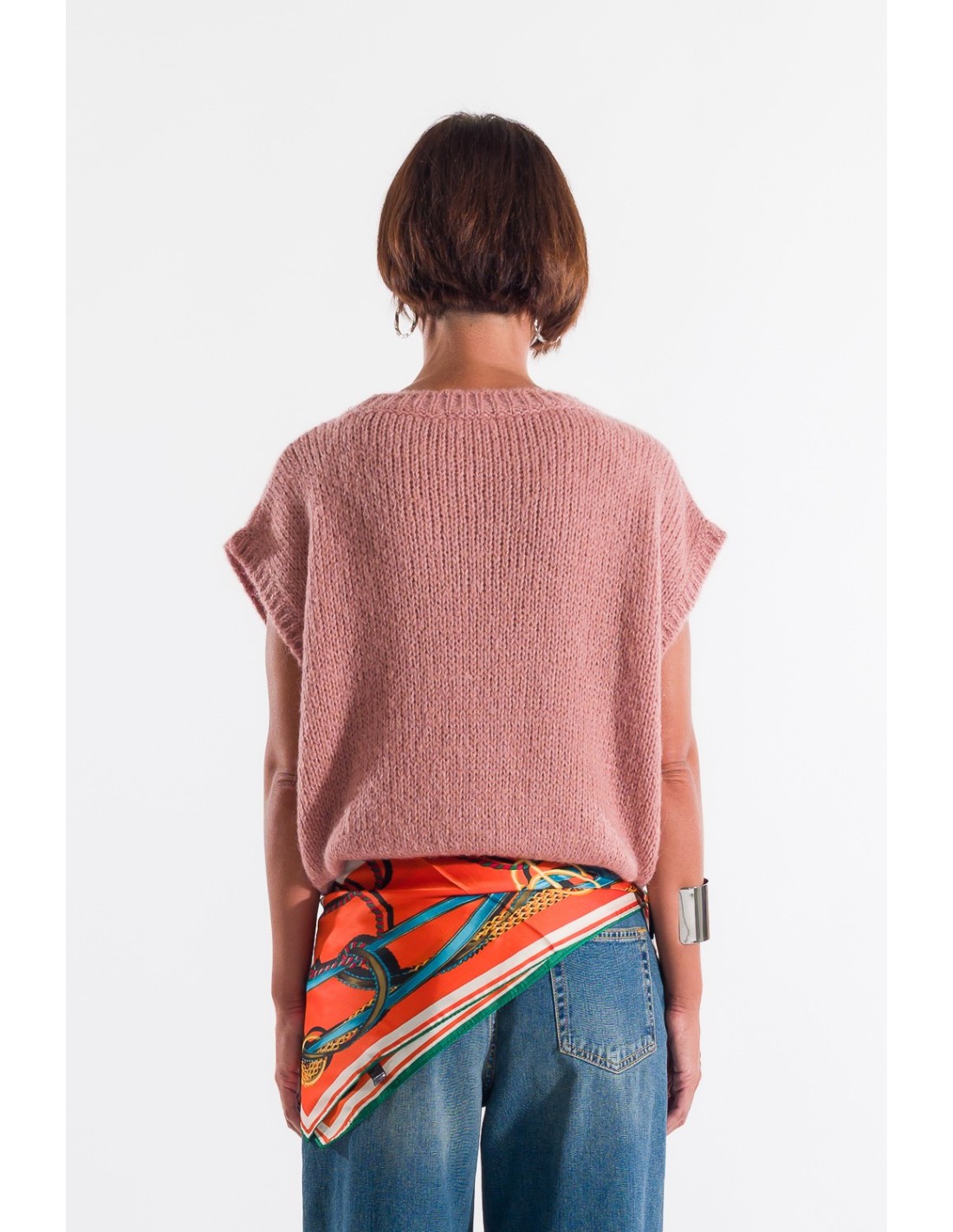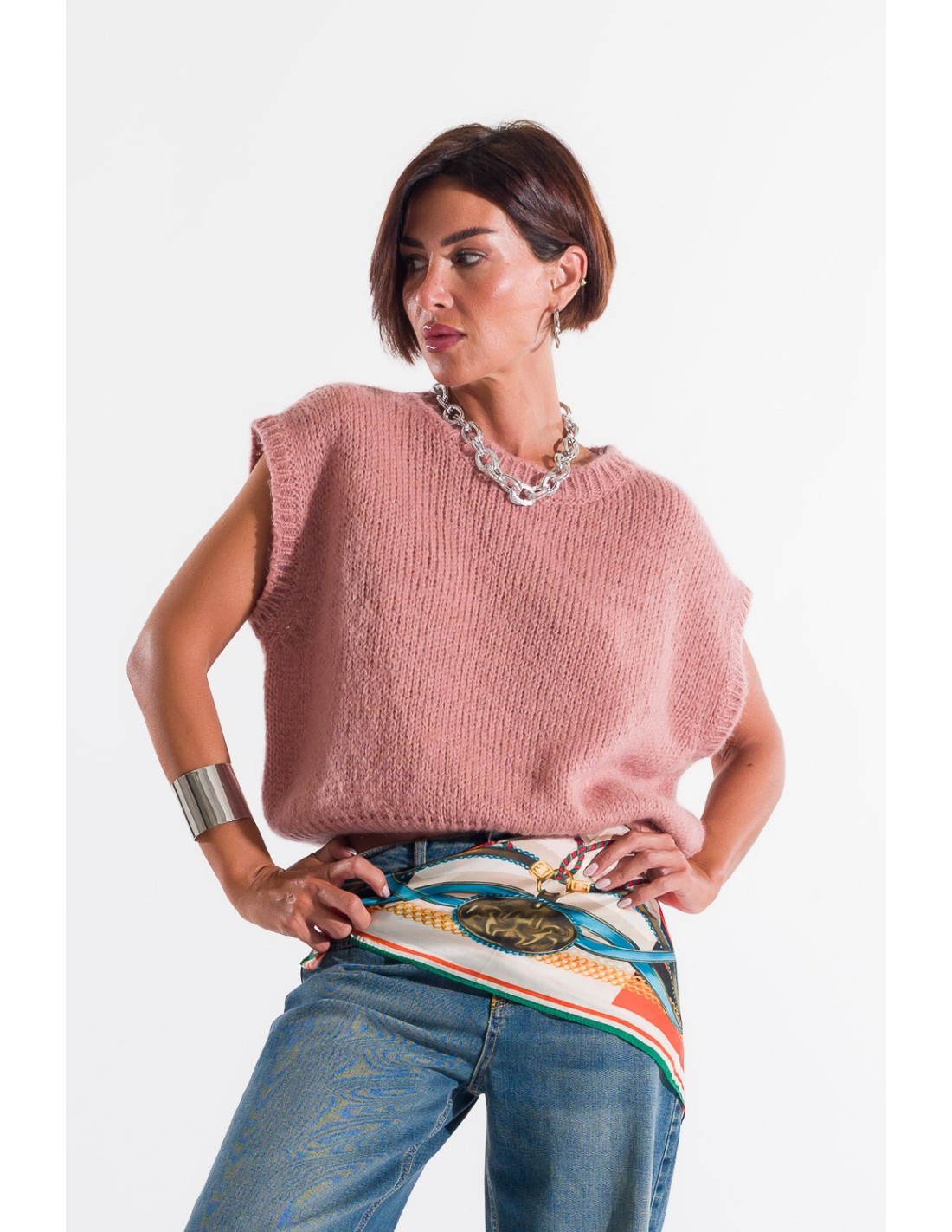 Konatto assina um top sem mangas de corte solto e ligeiramente boxy, em malha macia com efeito peluche e toque envolvente. Gola redonda em canelado e ombros caídos conferem uma silhueta descontraída mas cuidada. Fácil de sobrepor a camisas ou vestidos: perfeito para o escritório e para o dia a dia com um toque contemporâneo.