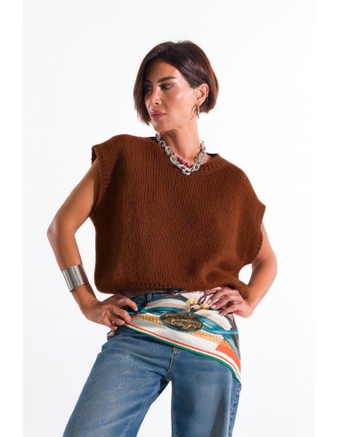 Konatto assina um top sem mangas de corte solto e ligeiramente boxy, em malha macia com efeito peluche e toque envolvente. Gola redonda em canelado e ombros caídos conferem uma silhueta descontraída mas cuidada. Fácil de sobrepor a camisas ou vestidos: perfeito para o escritório e para o dia a dia com um toque contemporâneo.