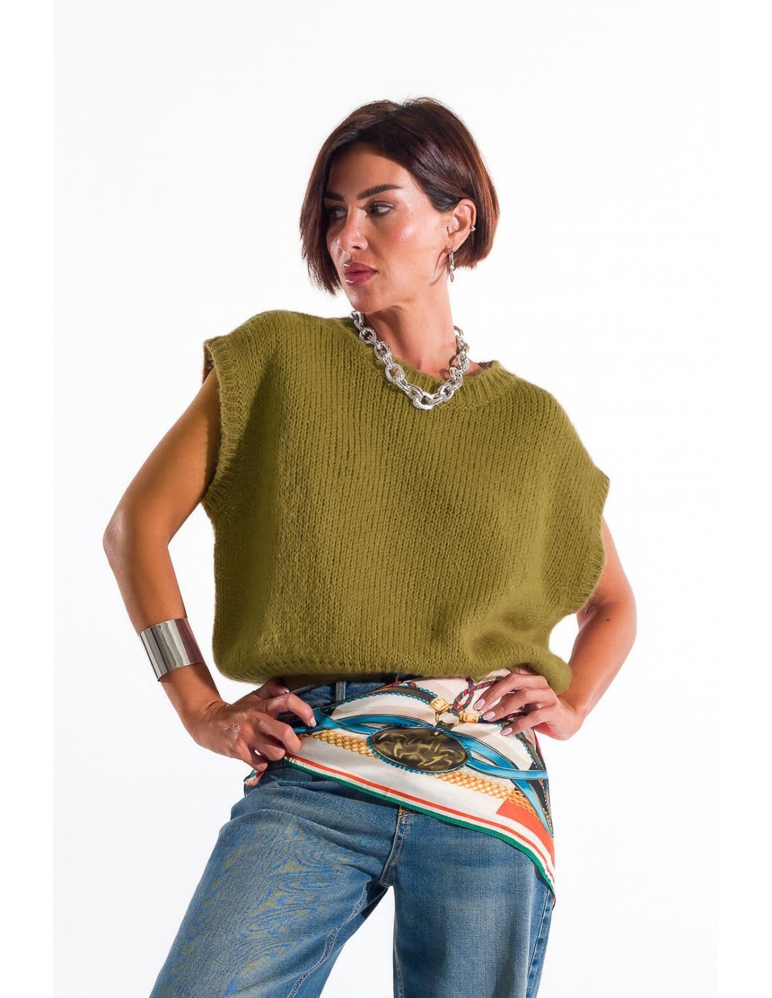 Konatto assina um top sem mangas de corte solto e ligeiramente boxy, em malha macia com efeito peluche e toque envolvente. Gola redonda em canelado e ombros caídos conferem uma silhueta descontraída mas cuidada. Fácil de sobrepor a camisas ou vestidos: perfeito para o escritório e para o dia a dia com um toque contemporâneo.